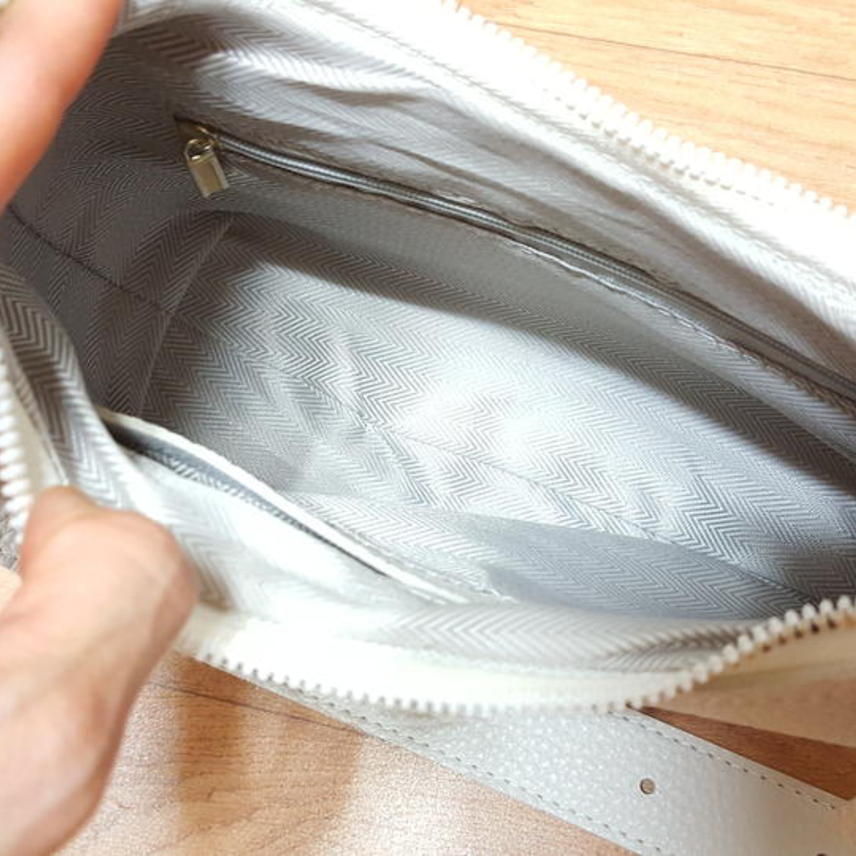 소프트해서 말랑말랑하며, 은은한 엠보패턴 있는 인조가죽이고요,, 화이트 아니고 미색계열이예요..