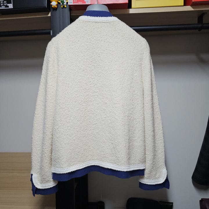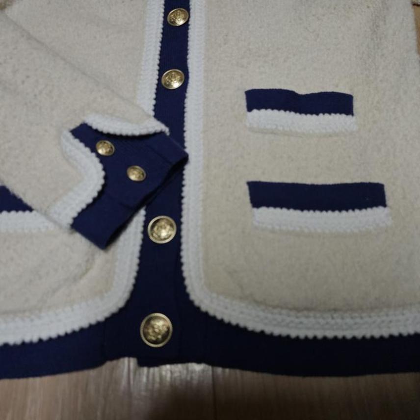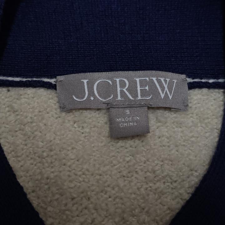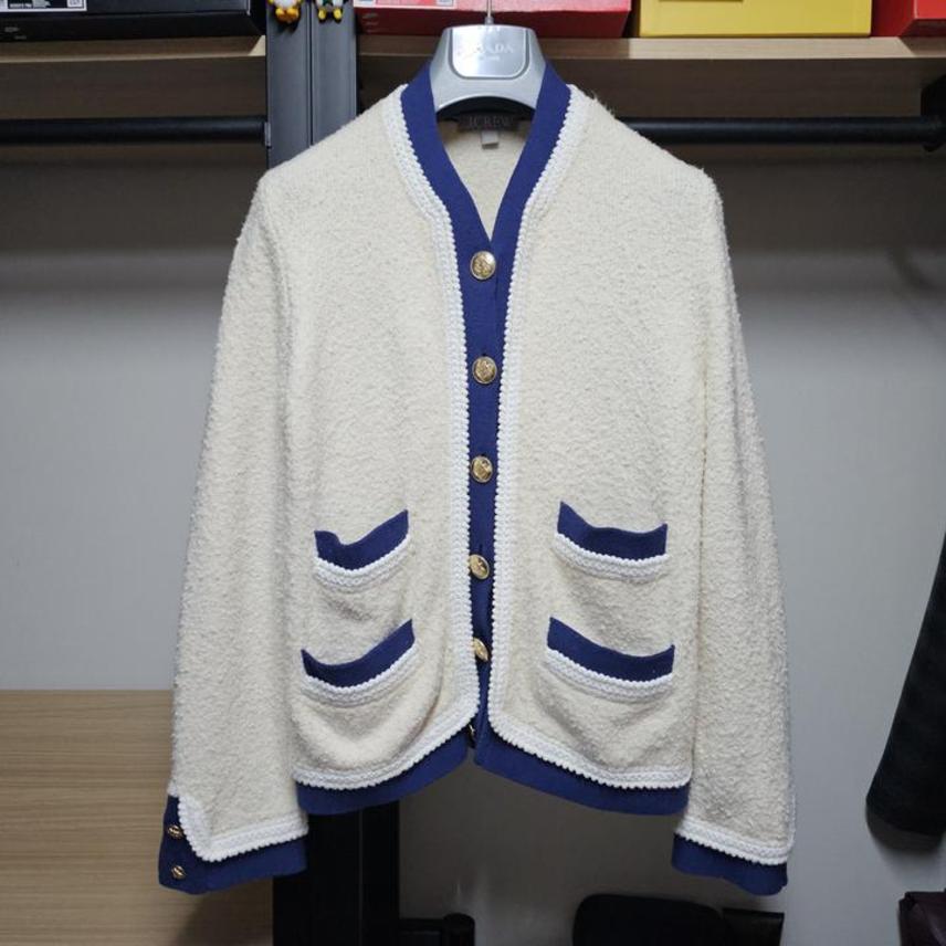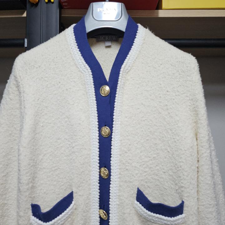 J.CREW/제이크루/아이보리+네이비배색/금장버튼/4포켓/세련된부클/여성니트자켓/S(95권장)
