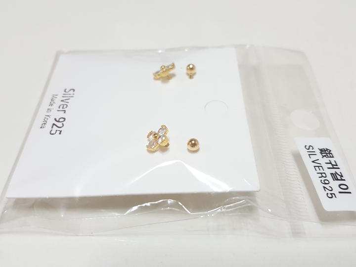 새상품)순은 귀걸이 2세트/큐빅귀걸이