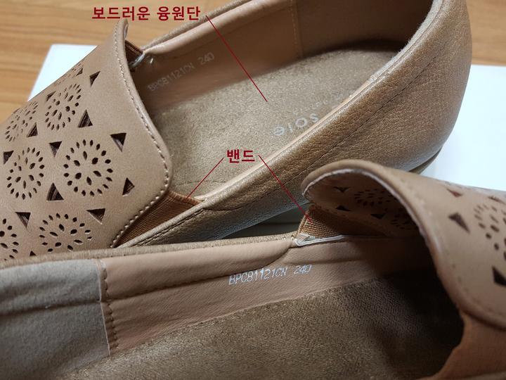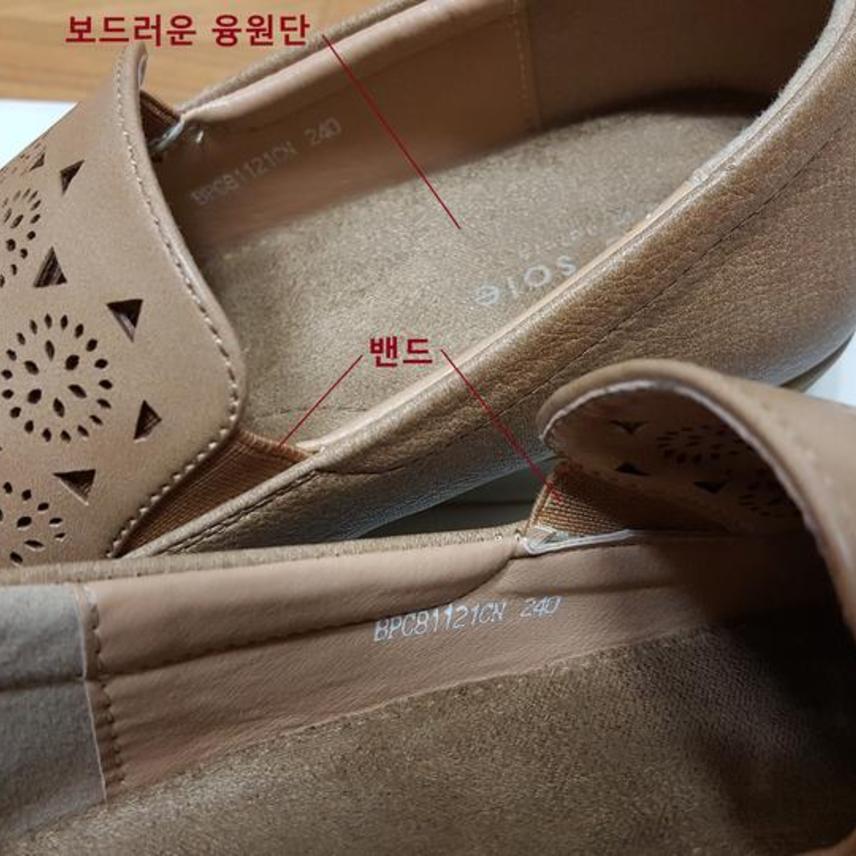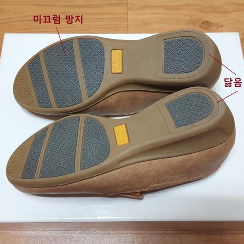 발등부분은 펀칭이며 양측면에 밴드로 되어 있고요,, 안깔창은 폭신폭신 쿠션감 아주 좋고 보드러운 융원단으로 되어 있으며,, 바닥창도 딱딱하지 않고 유연성 있어 아주 편하고요,, 미끄럼방지창이예요..
