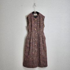 브라운 기계주름 풍성맥시원피스