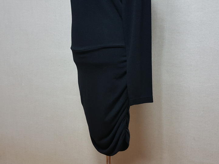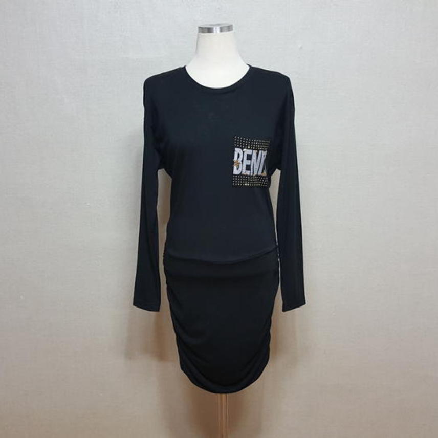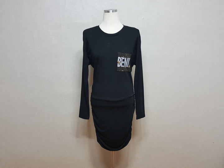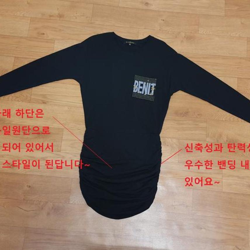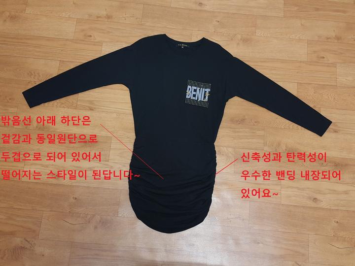 약간 얇은 편이고요,, 하단 셔링부위는 두겹으로 되어 있어 자연스럽게 떨어지도록 되어 있으며,, 블랙이예요..