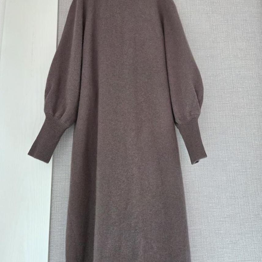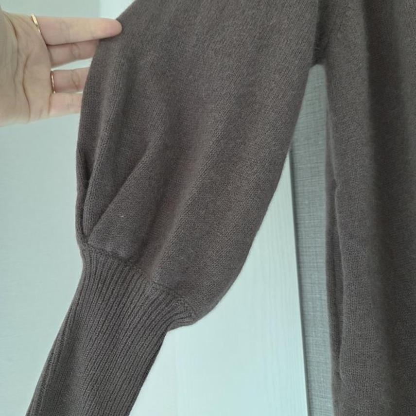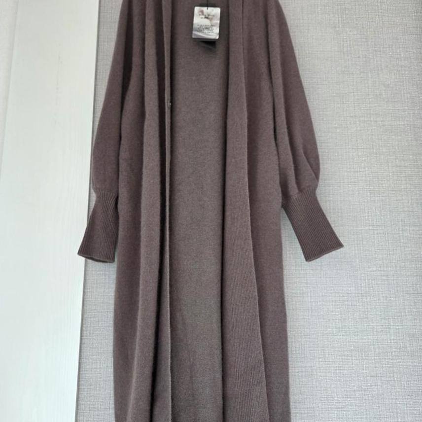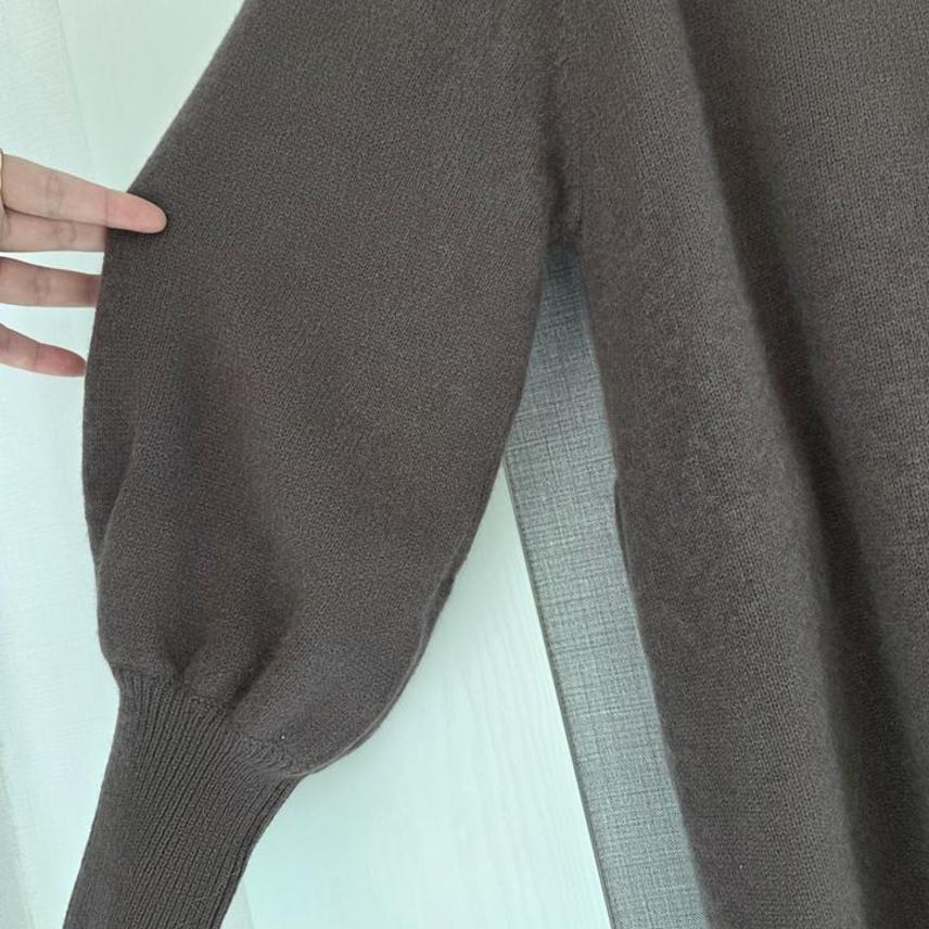 (택채새)THE A+G 양모함유 볼륨소매 롱니트가디건