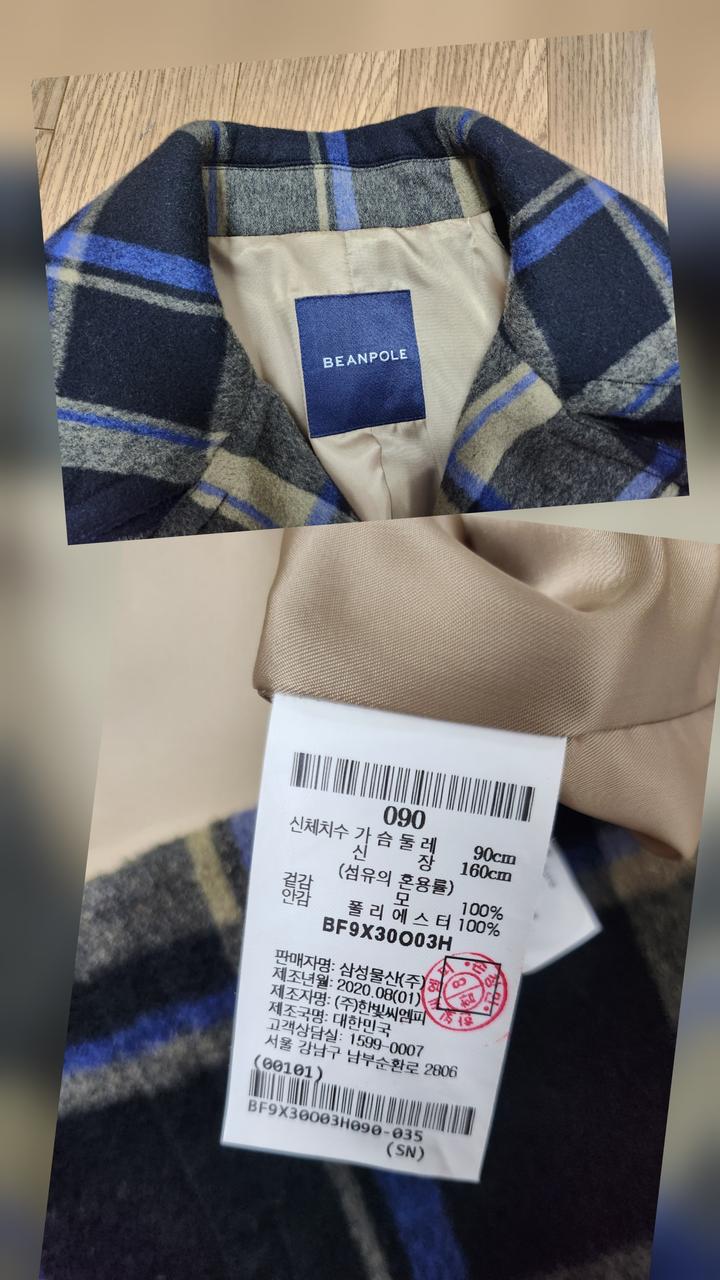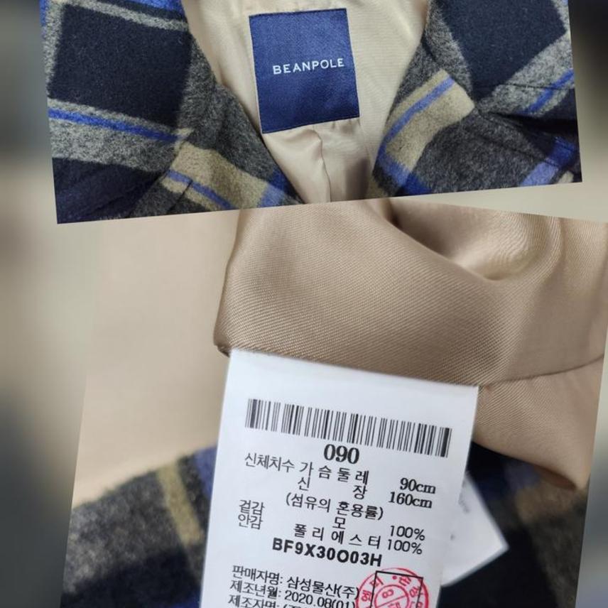 빈폴 울100% 체크코트55(새제품)