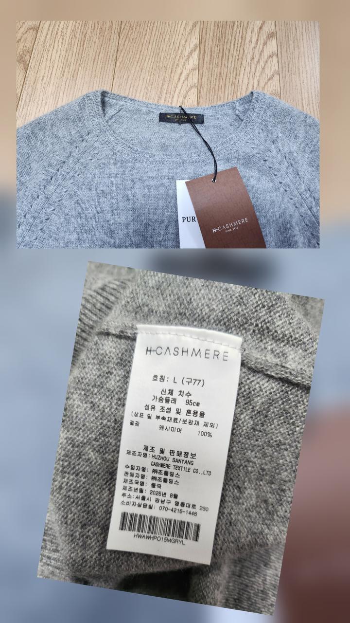 H 내몽고산 퓨어 캐시미어100% 니트66 77(새제품 그레이)