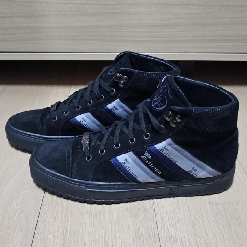 John Galliano/존갈리아노/이태리정품/블랙/부드러운스웨이드/남성미드탑/스니커즈/42(270권장)