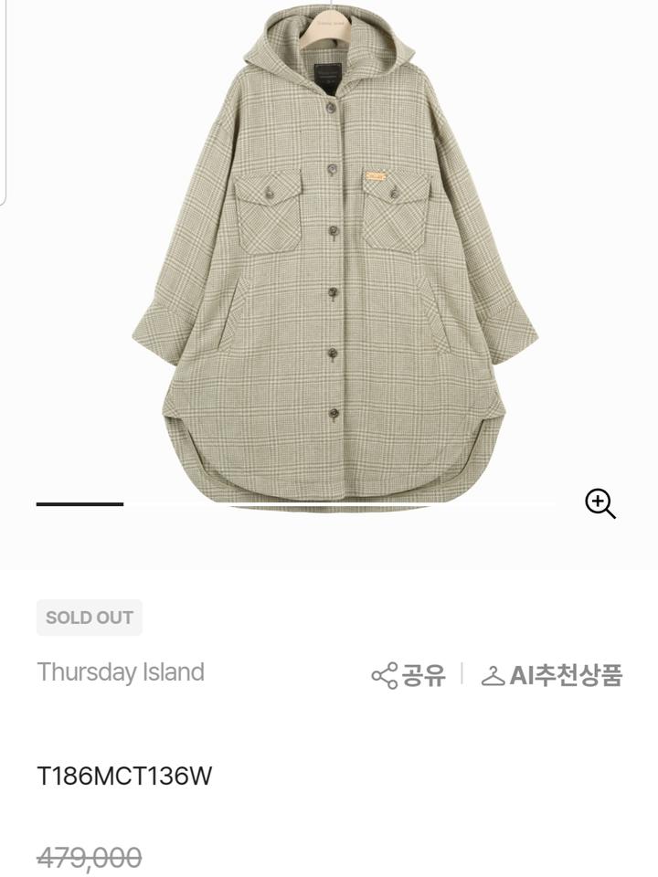 썰스데이아일랜드 오버핏 체크아우터(택포)