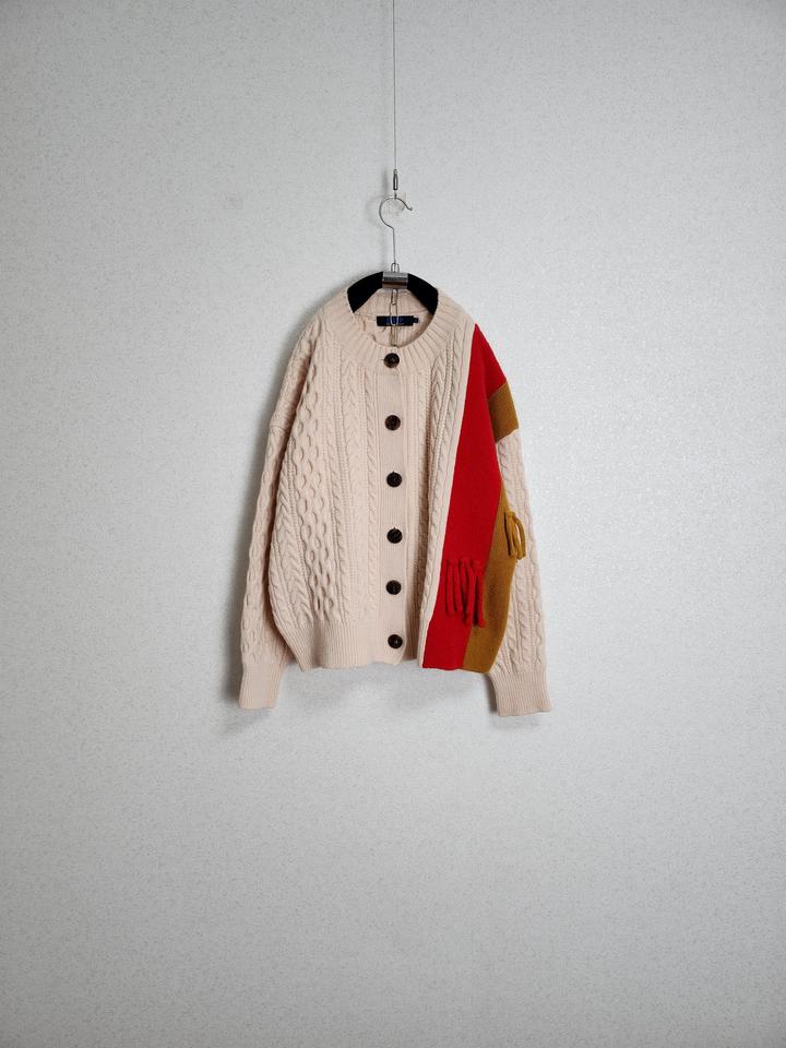 SJYP 태슬배색 케이블 울가디건55 66