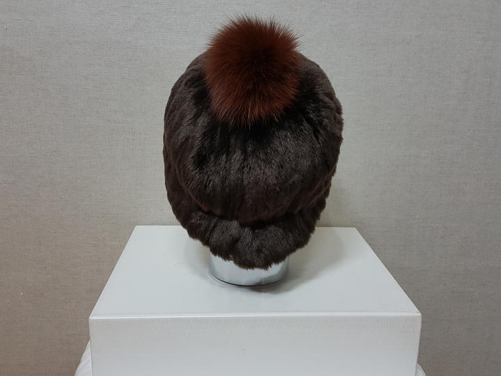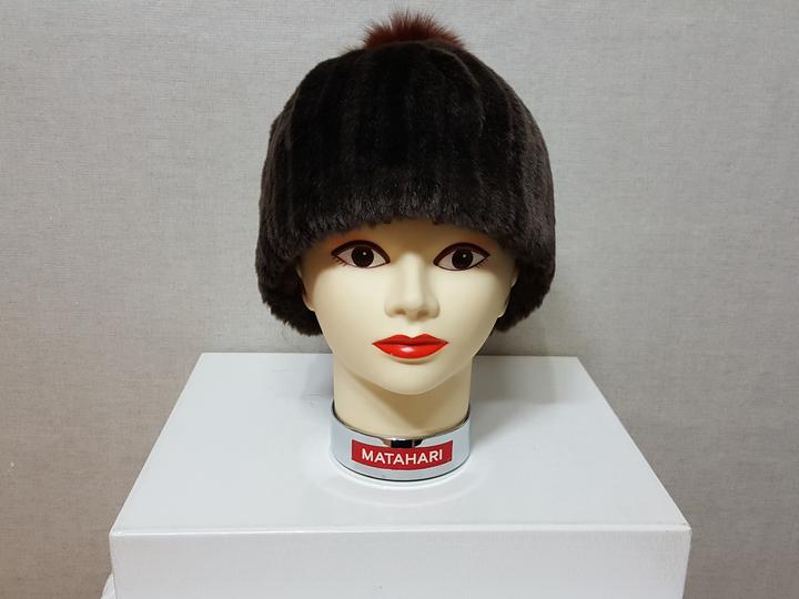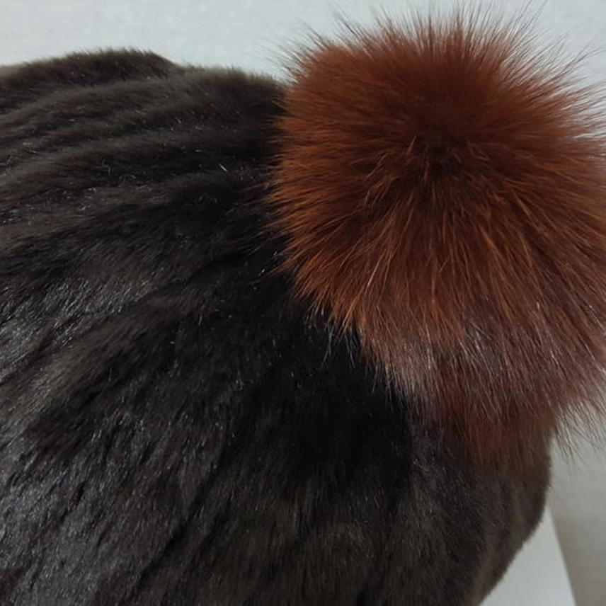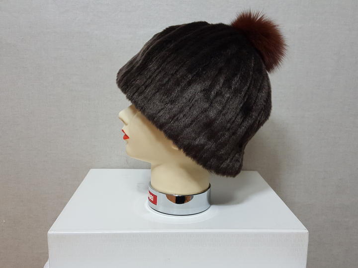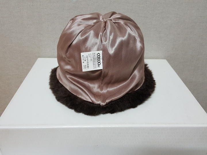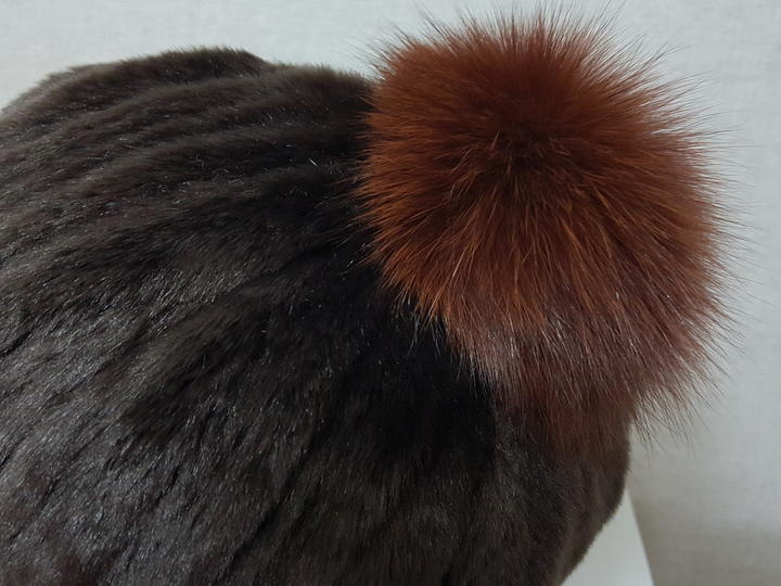 아주 보드럽고 풍성한 인조 밍크이며 진한 밤색이고요,, 방울은 천연 여우털이예요.. 많이 도톰하고 아주 따뜻해요..