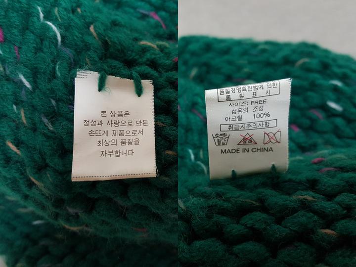 아크릴100%,, 도톰하고 털감있어 따뜻한 소재이며,, 진한 청록색이예요..