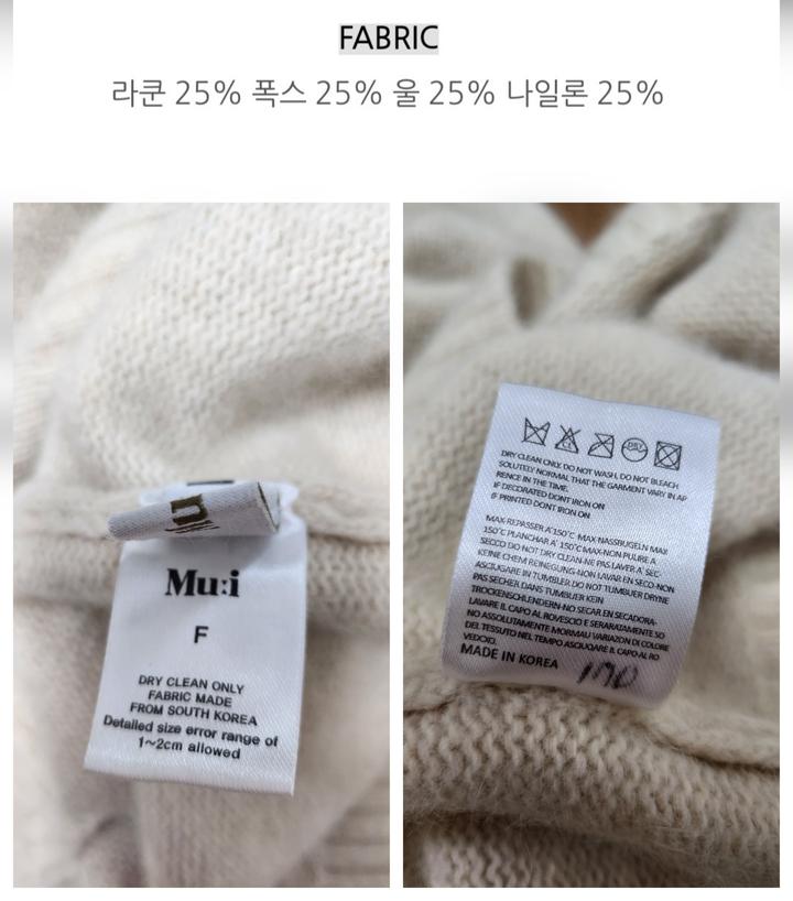 라쿤25%, 폭스25%, 울25%, 나일론25%