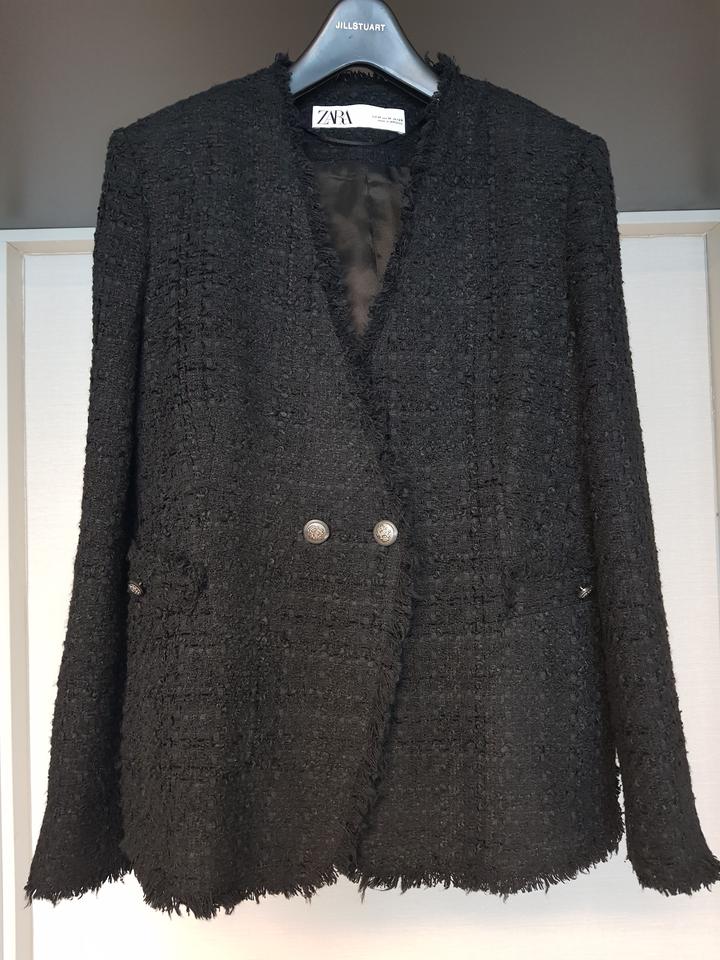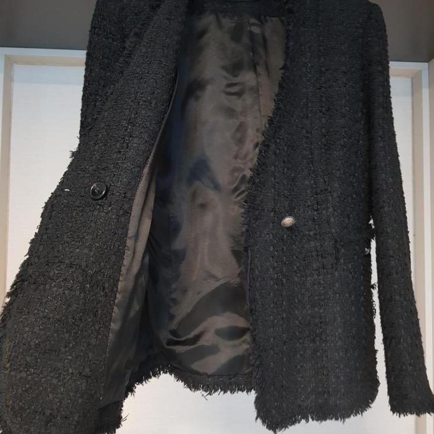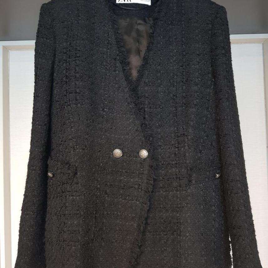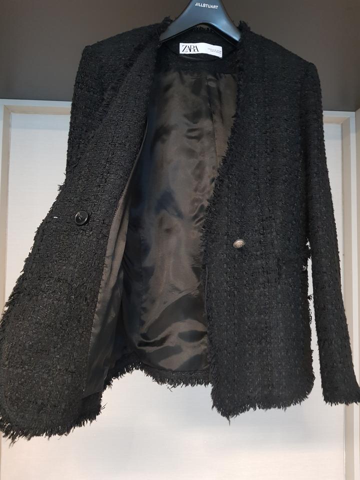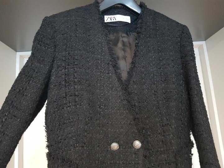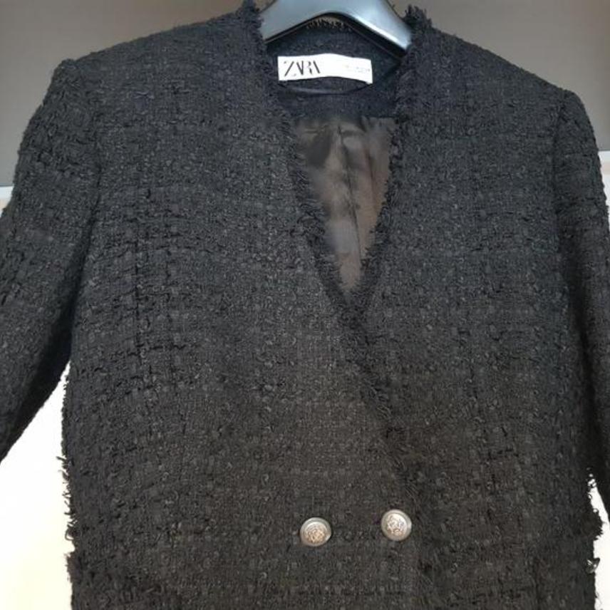자라 블랙 트위드 자켓입니다