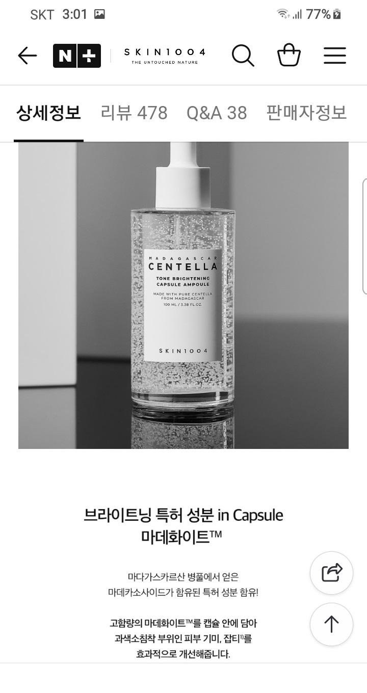 새상품)스킨1004 마다가스카르 센텔라 톤 브라이트닝 캡슐 앰플/미백+진정 30ml