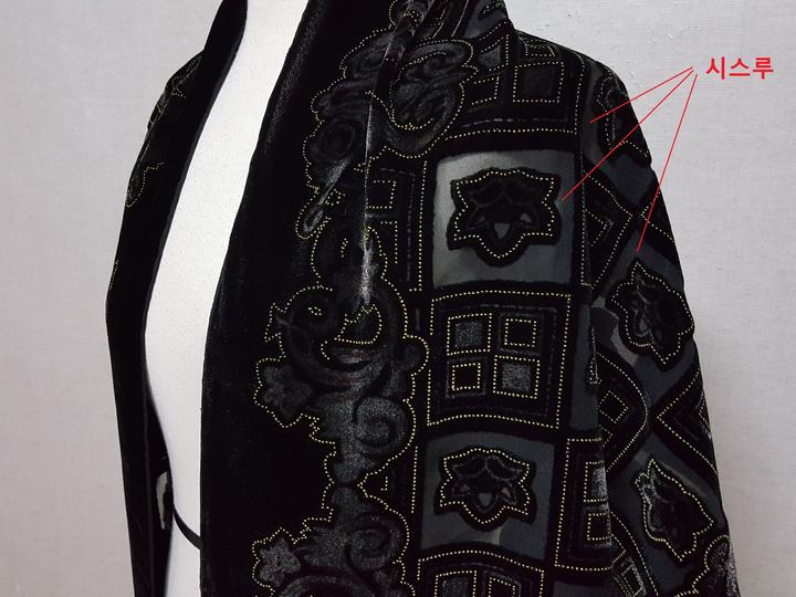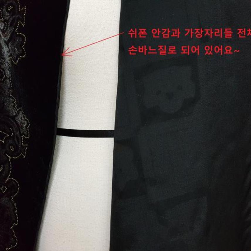 안감과 겉감의 연결과 하단의 수술 모두 핸드메이드로 되어 있는 것이예요..