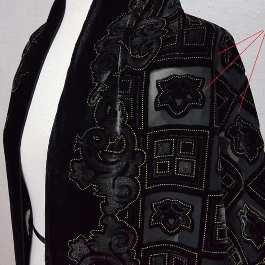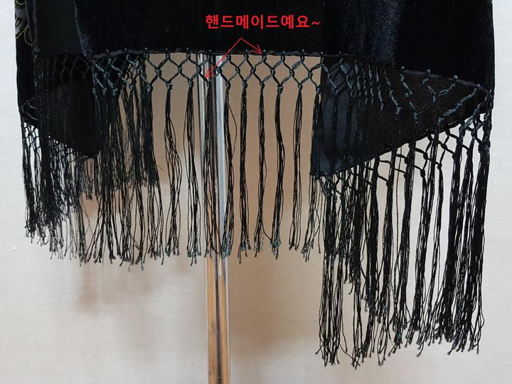 술포함 길이202*폭51cm,, 곱고 보드러운 벨벳에 안감은 쉬폰이며,, 새까만 블랙에 금색 도트예요..