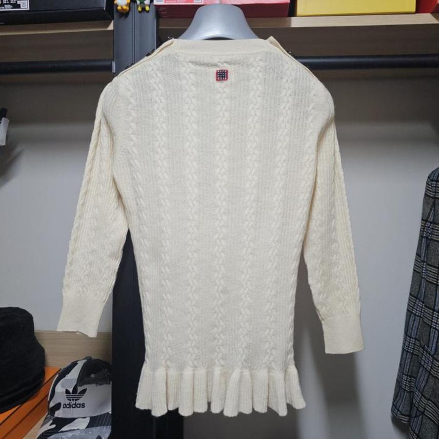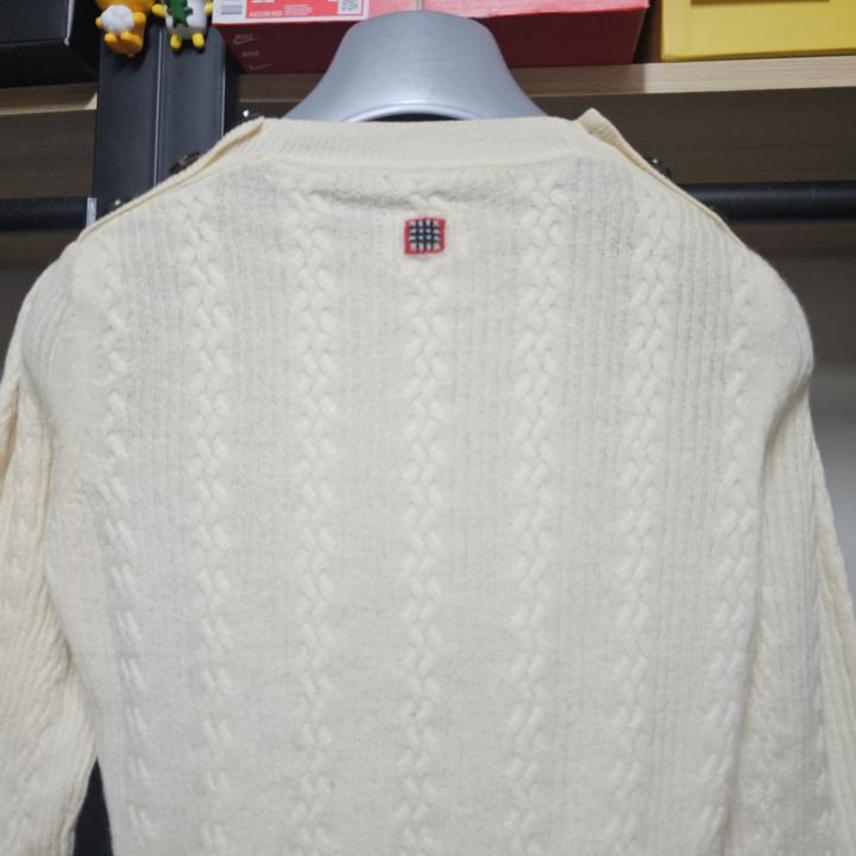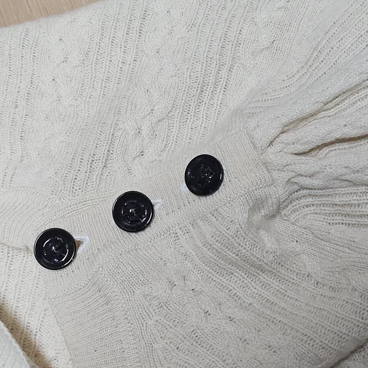 BURBERRY/버버리/아이보리/버튼+밑단포인트/부드러운캐시미어/여성케이블니트/S