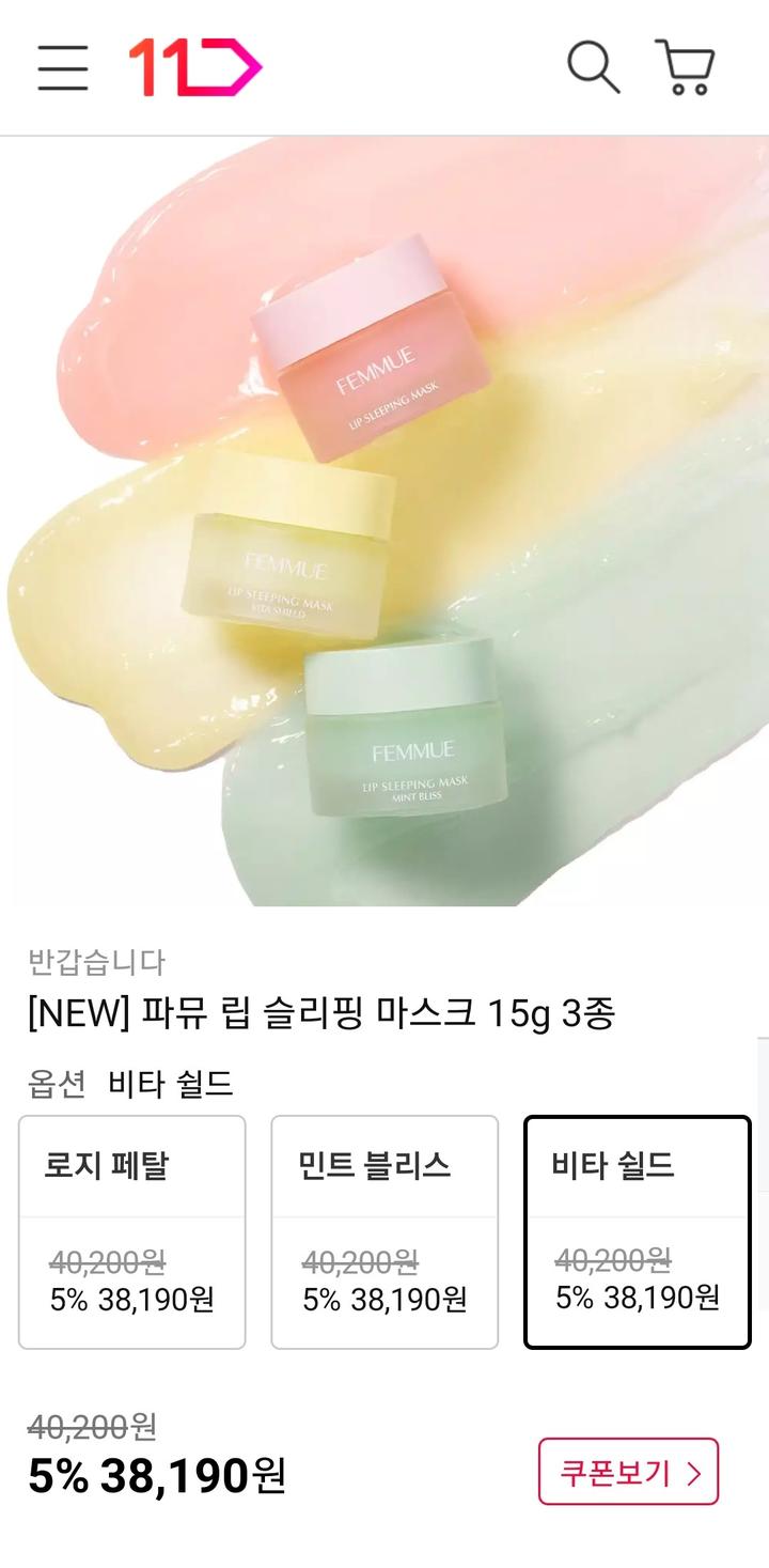 새상품)파뮤 립슬리핑 마스크/립 보습케어/02비타쉴드 15g