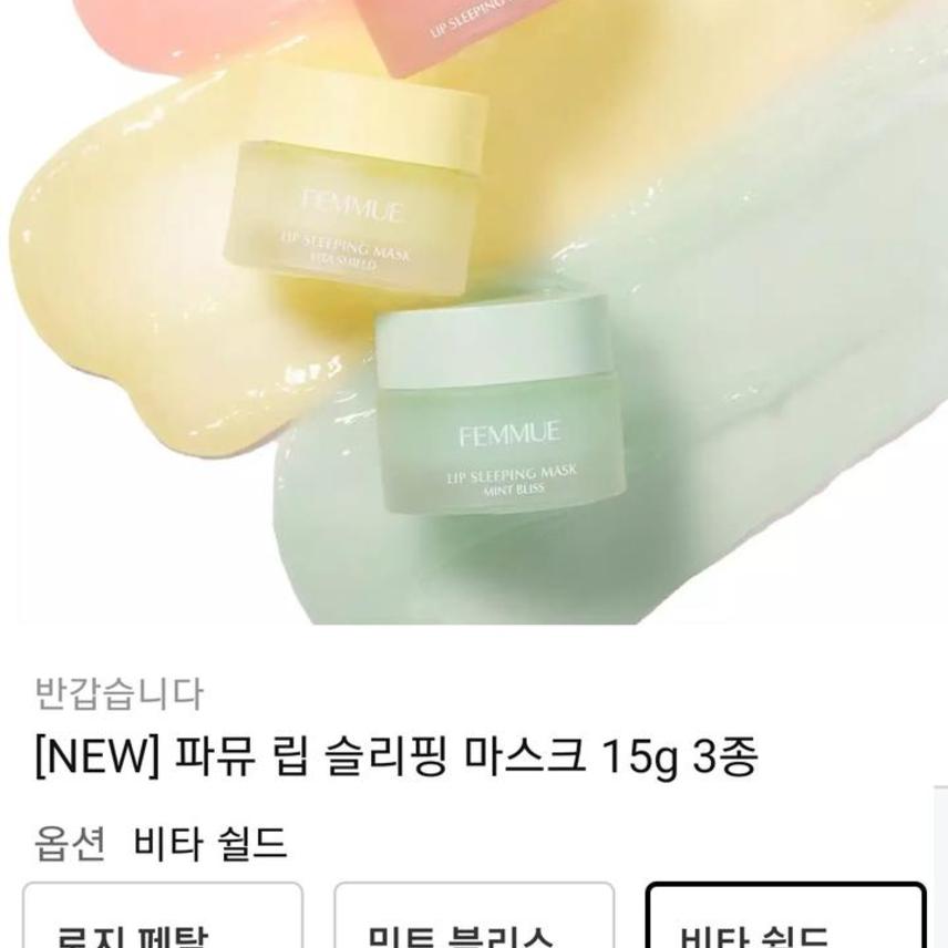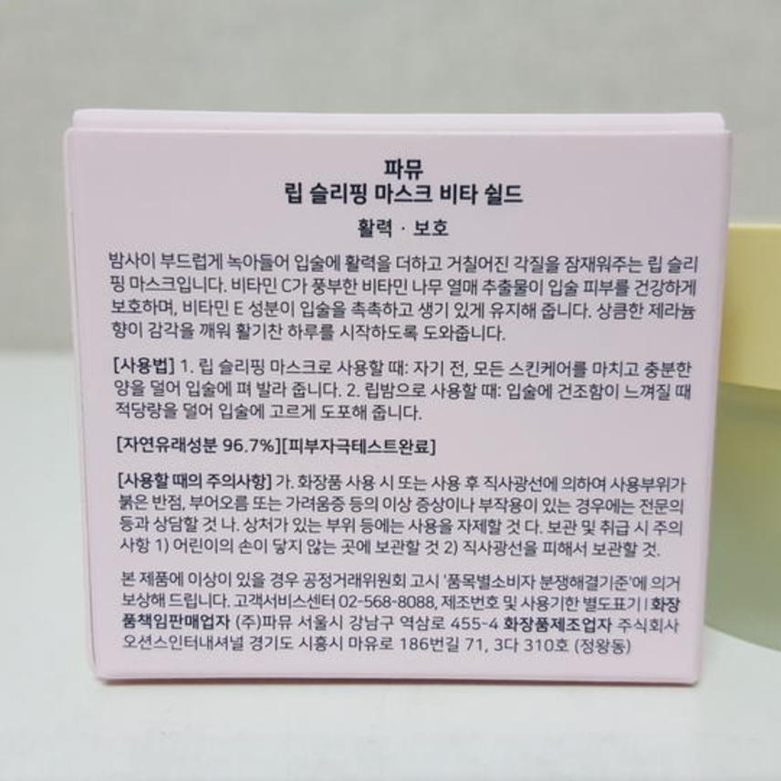 ** 새상품)파뮤 립슬리핑 마스크/립 보습케어/02비타쉴드 15g **