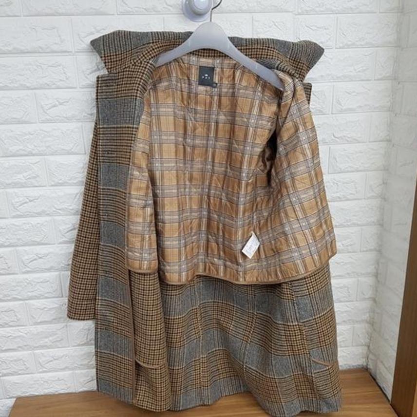 PAT 정품 핸드메이드 체크 울코트 100(77)사이즈 (모혼방소재. 고정식 얇은패딩내피 . 정가 70만원대 제품입니다)
