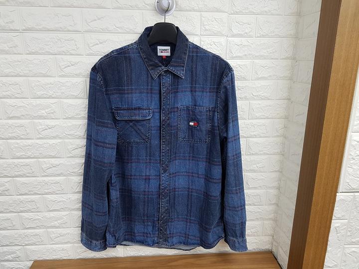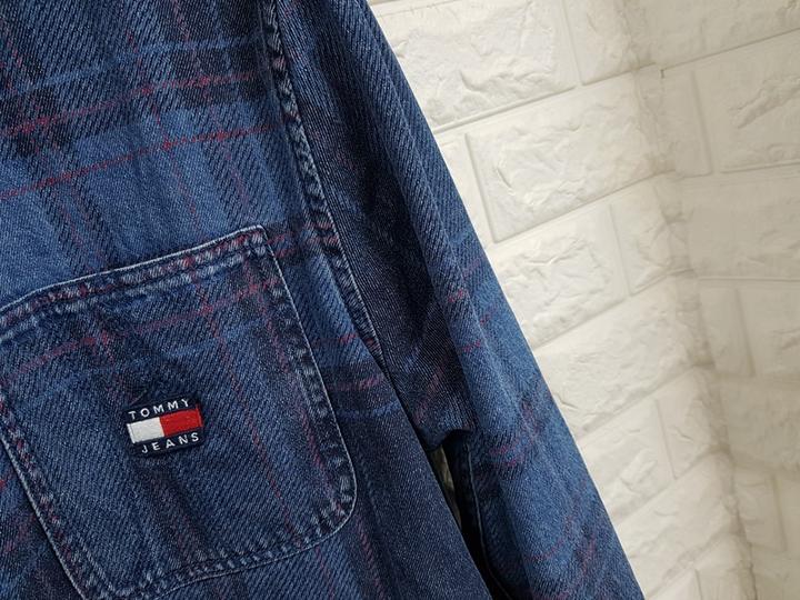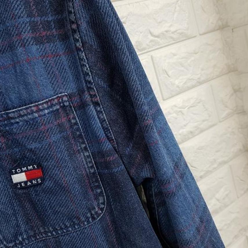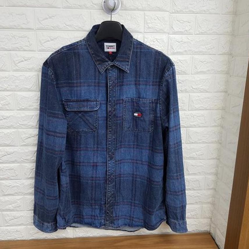타미힐피거 정품 체크 데님남방 남성105~작은110사이즈 (원래 빈티지한 스타일입니다)