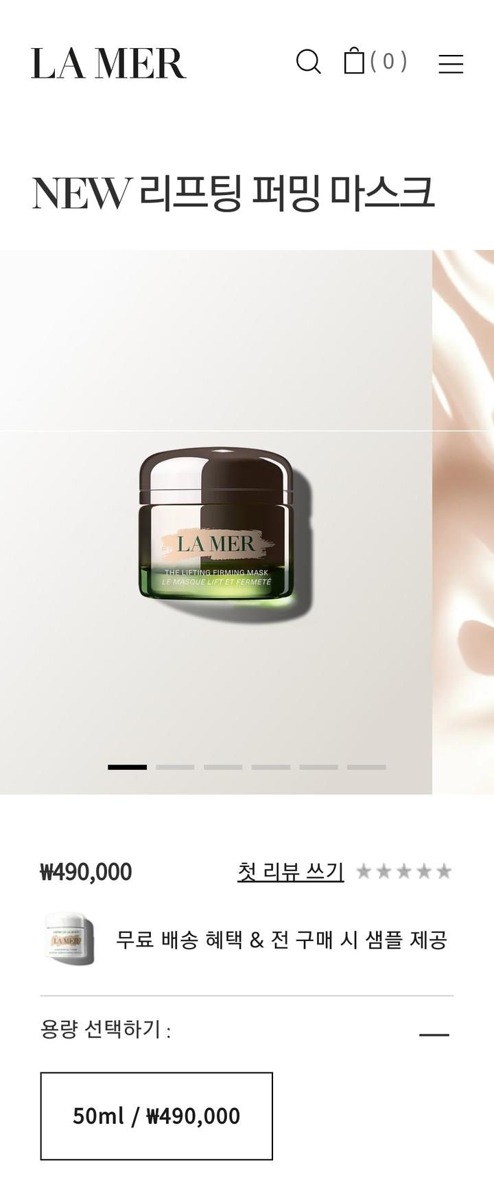 ** 새상품)라메르 NEW 리프팅 퍼밍 마스크(주름개선과 탄력)50ml **