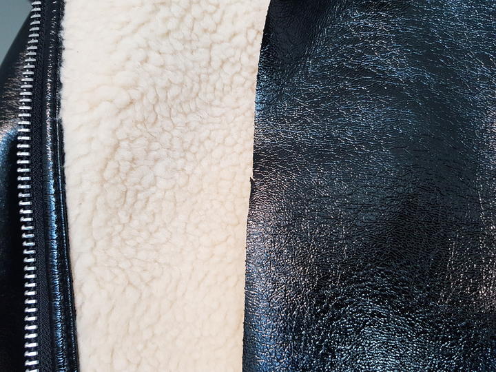 유광 인조가죽소재에 안감쪽 전체 퍼마감,