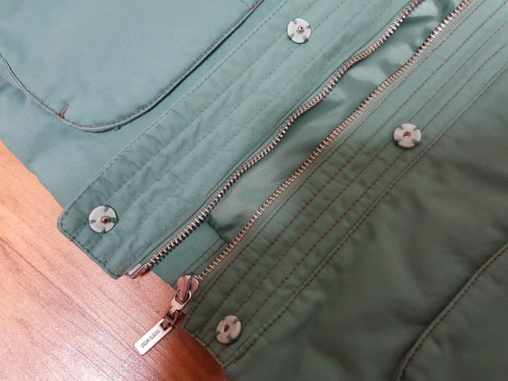 겉감-면71+나일론29%,, 일반 패딩원단과는 다른,, 고급스러운 원단이고요,, 화사하고 세련된 밝은 올리브계열로, 실사색상 훨씬 예뻐요..