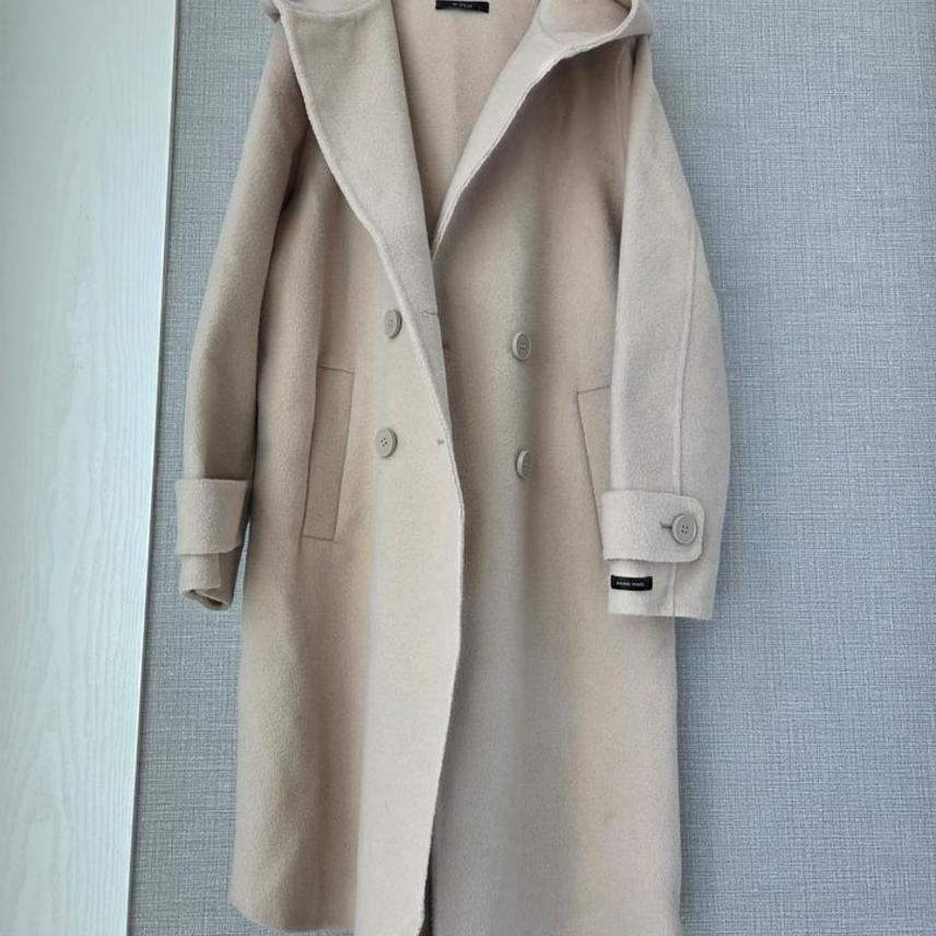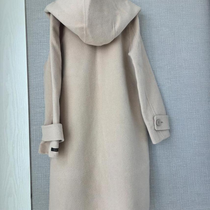 후드가 있어 캐주얼한 느낌의 핸드메이드 롱코트에요