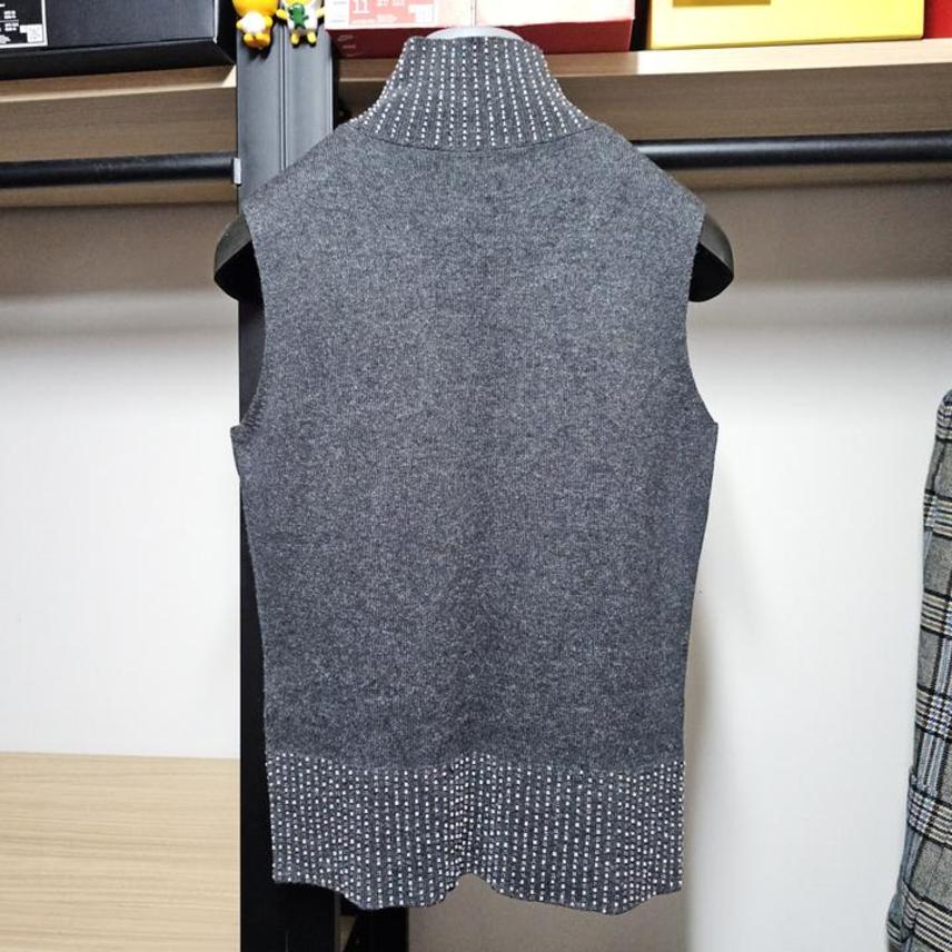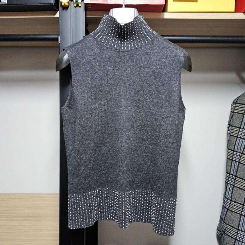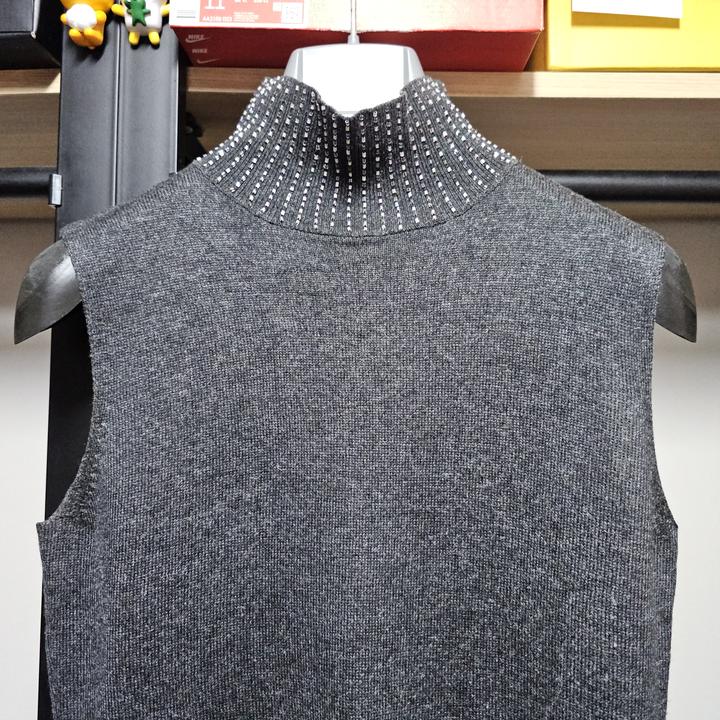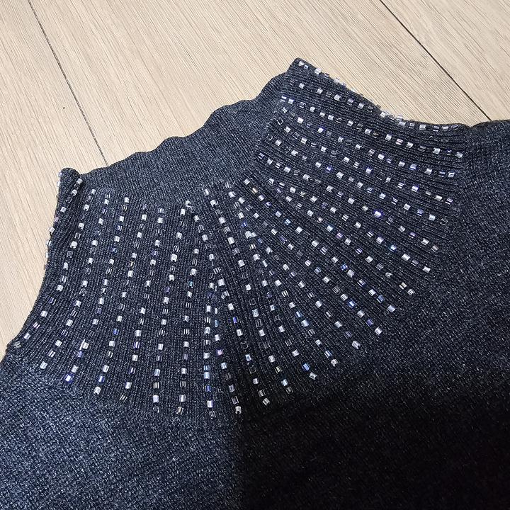 MaxMara/막스마라/다크그레이/부드러운실크+캐시미어/세련된비즈장식/신축성좋은/터틀넥베스트/니트조끼/95(90-95권장)