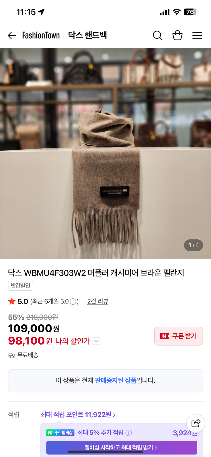 남녀공용 닥스 100% 캐시미어 머플러입니다