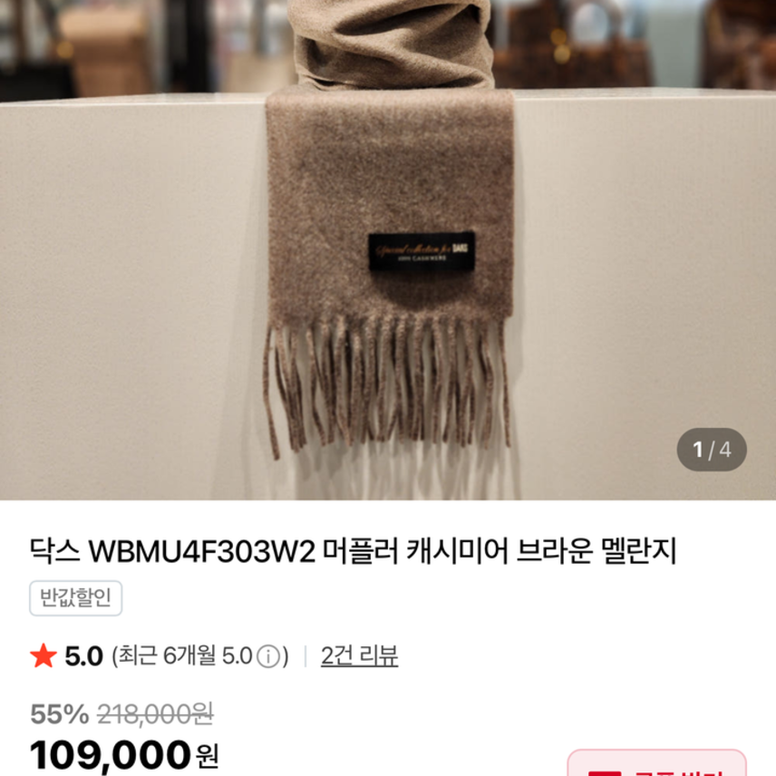 (새상품) 남녀공용 닥스 캐시미어 머플러 브라운 멜란지