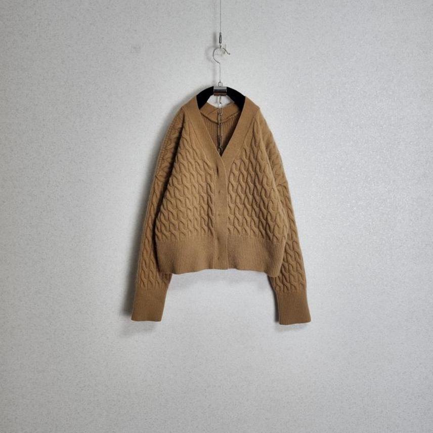 런던플랏 울&앙고라 케이블 세미크롭 가디건55 66