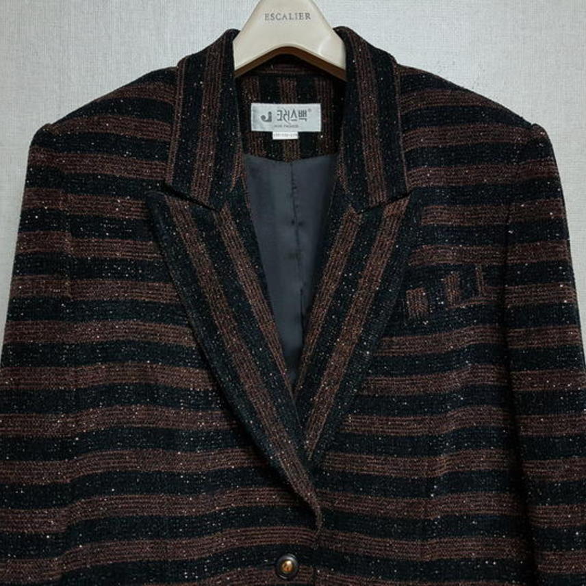 중장년/초봄용)크리스백 순모 트위드 여성자켓 77 새것수준