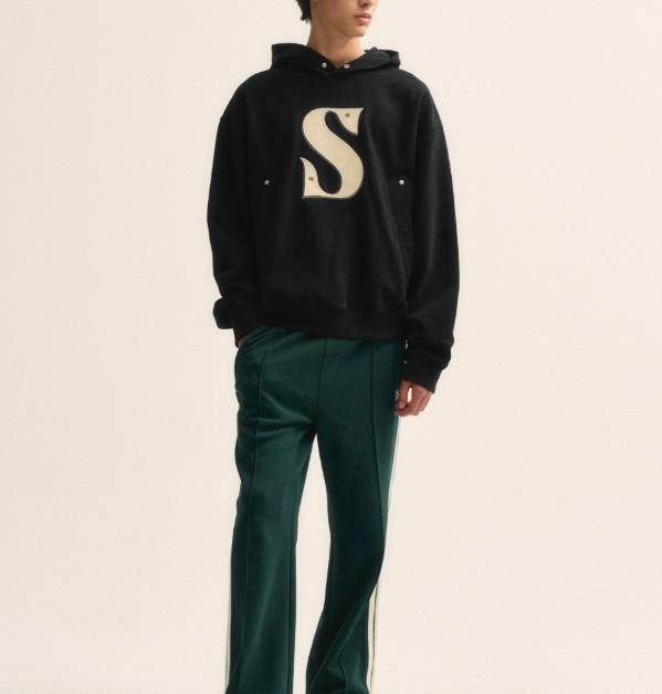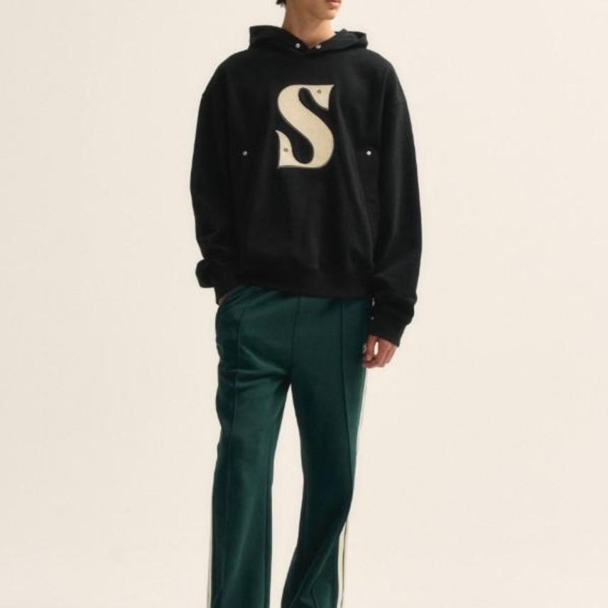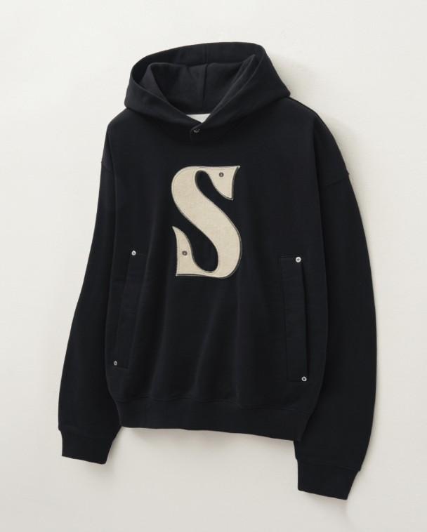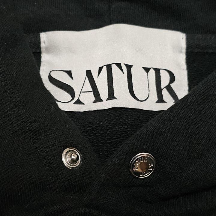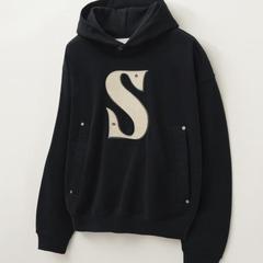 SATUR Rivet Applique Pocket Logo Hoodie Black/세터 블랙 리벳 아플리케 포켓 로고 남성후드/100