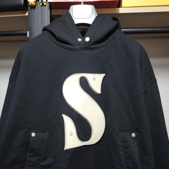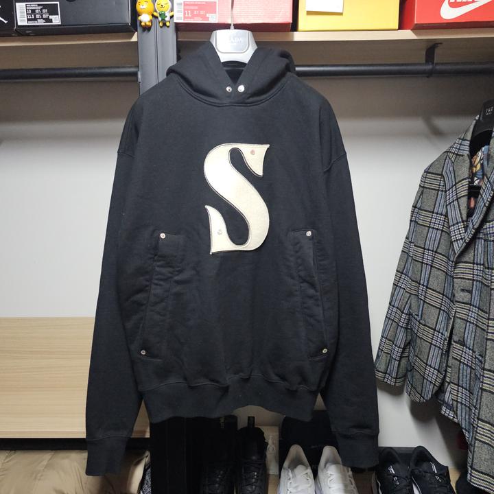 세터 블랙 리벳 아플리케 포켓 로고 남성후드 100
