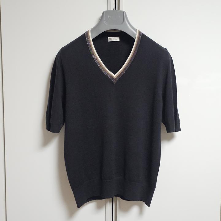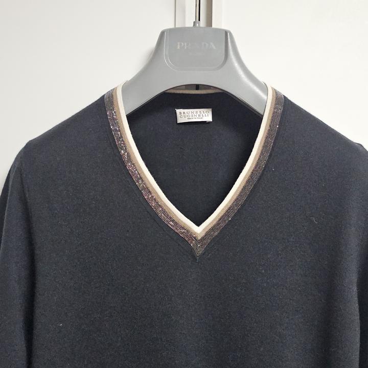 Brunello Cucinelli/브루넬로쿠치넬리/블랙/부드러운실크+캐시미어/비즈장식/여성니트/M