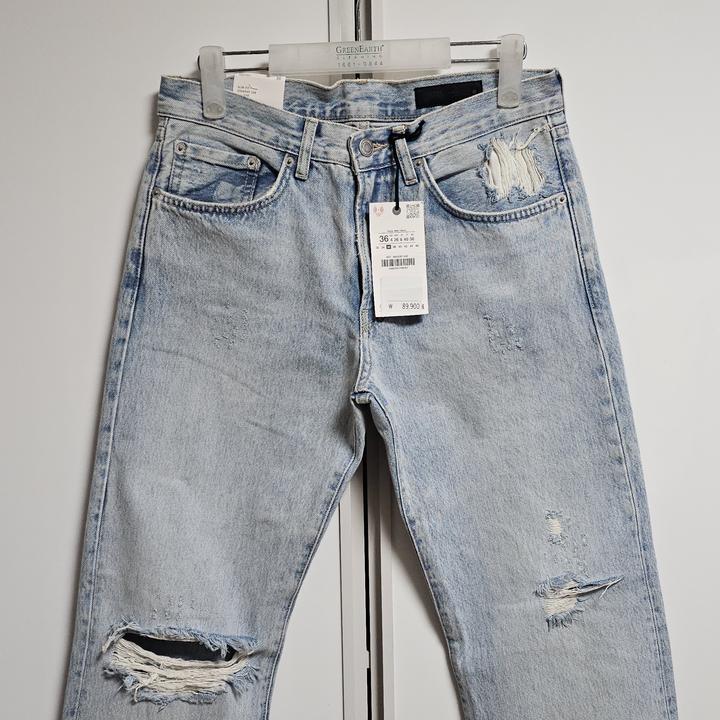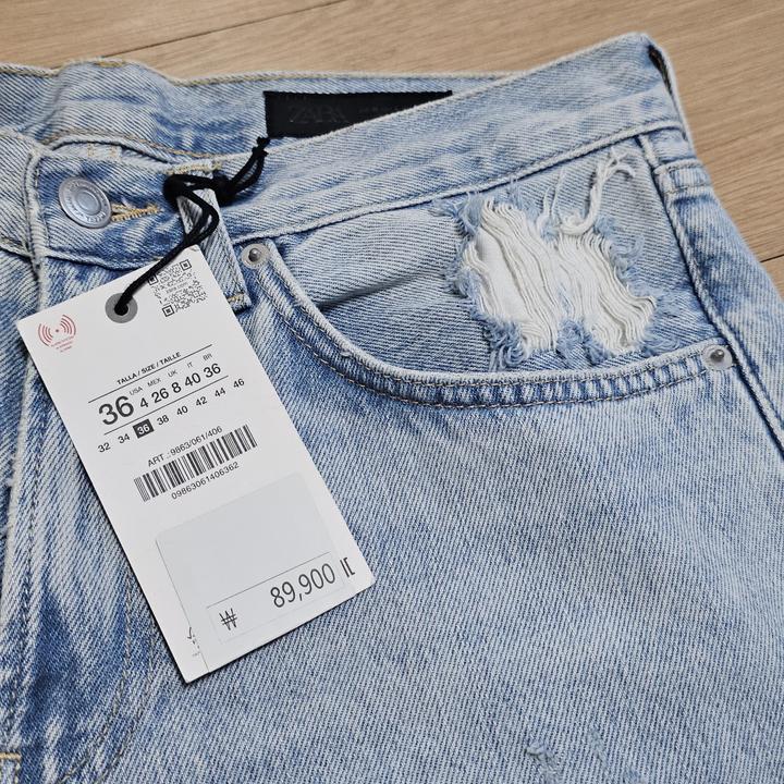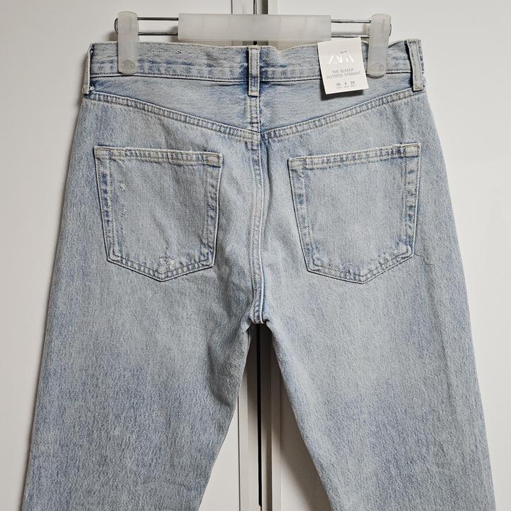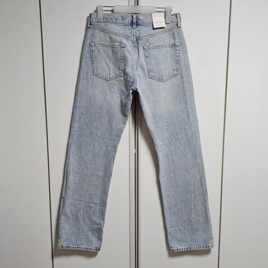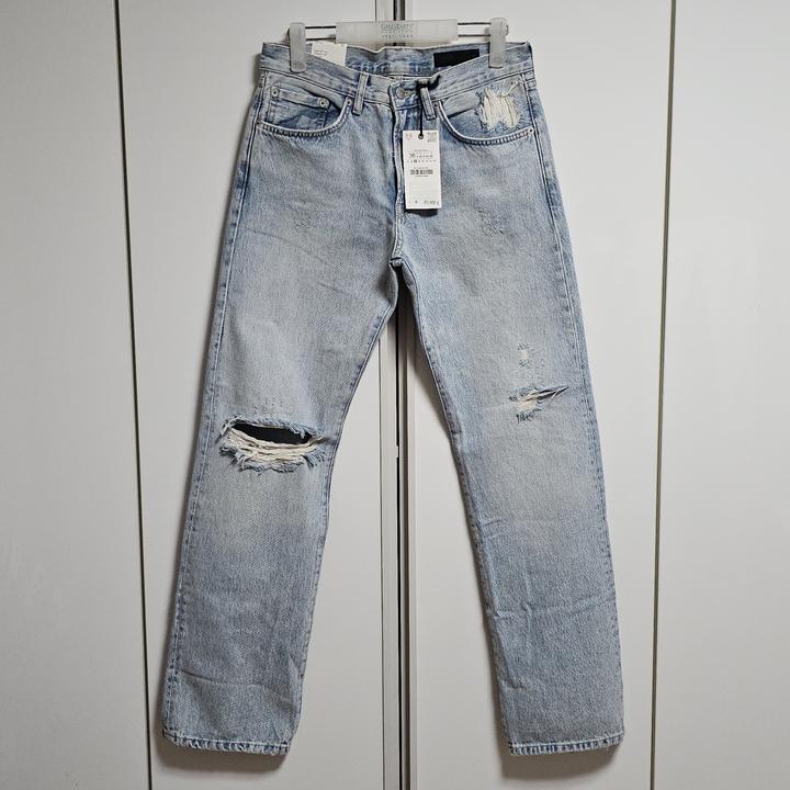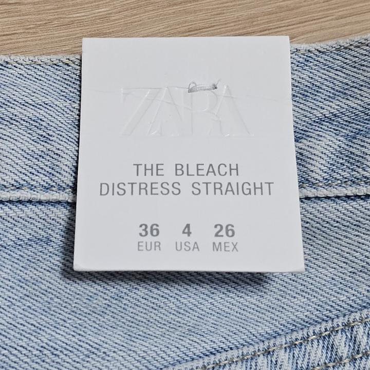 ZARA THE BLEACH DISTRESS STRAIGHT JEANS/자라 라이트블루 블리치 미사용 여성 디스진/36(28-29권장)
