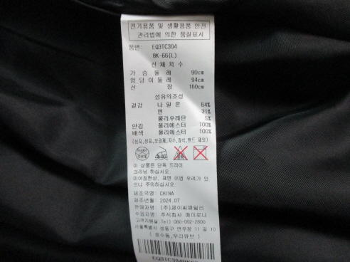 사이즈66L 가슴둘레90 가슴반품53 총장114