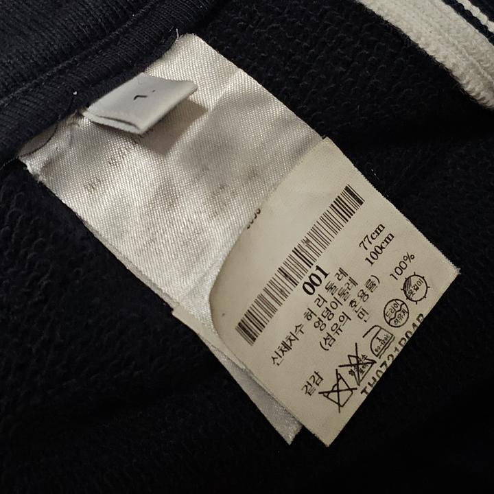 실측사이즈 : 허리 39-41 Cm, 밑위 31 Cm, 허벅지 32 Cm, 밑단 12 Cm, 총장 93 Cm