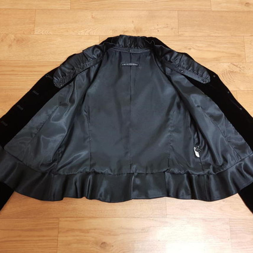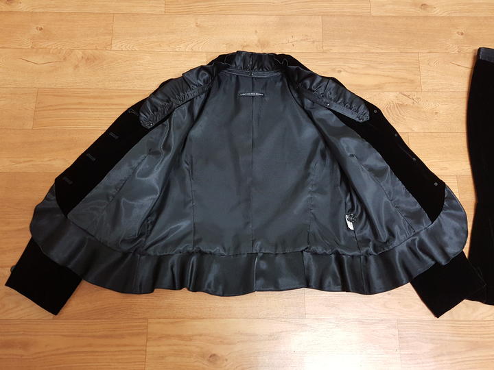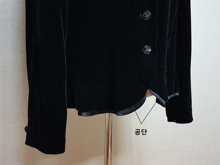 자켓과 스커트 모두 하단부위에는 프릴로 되어 있어 아주 예쁘고요,, 버튼들은 블랙큐빅이 밖혀 있어 한결 고급스럽답니다..