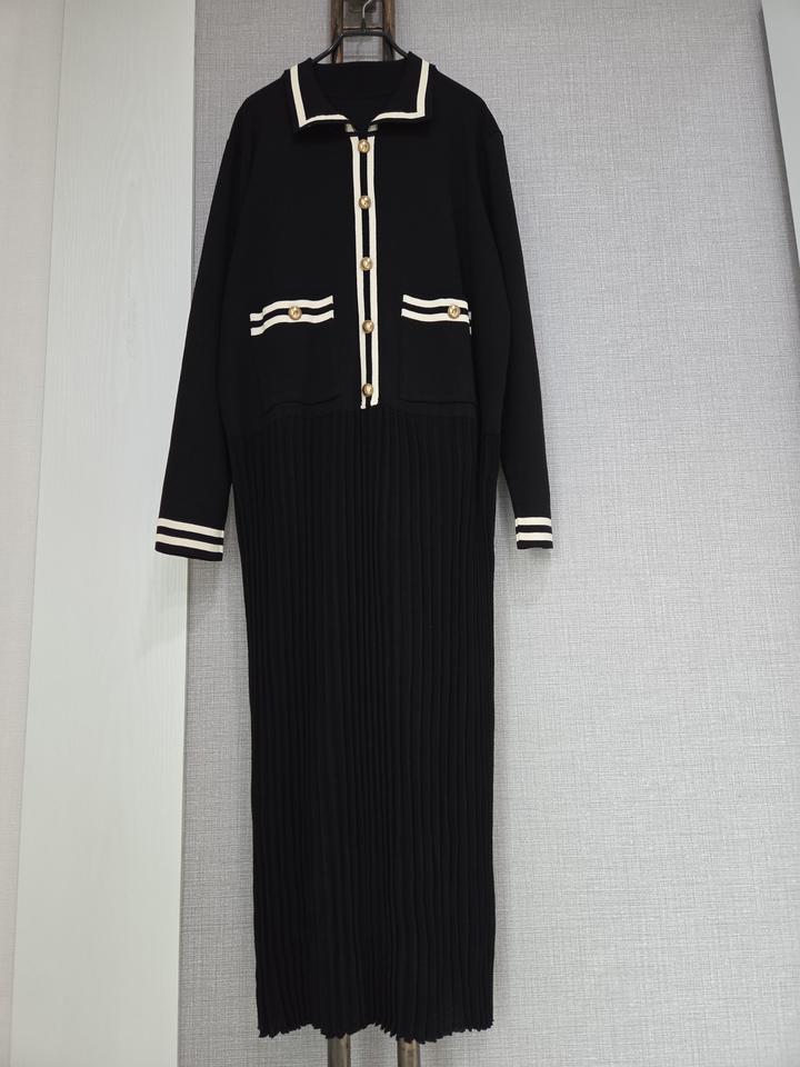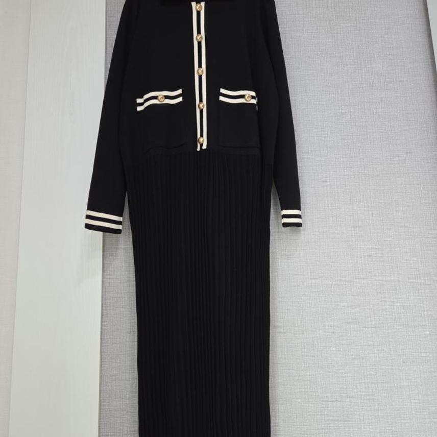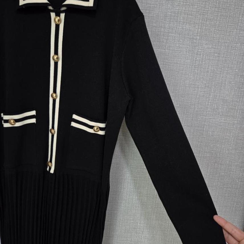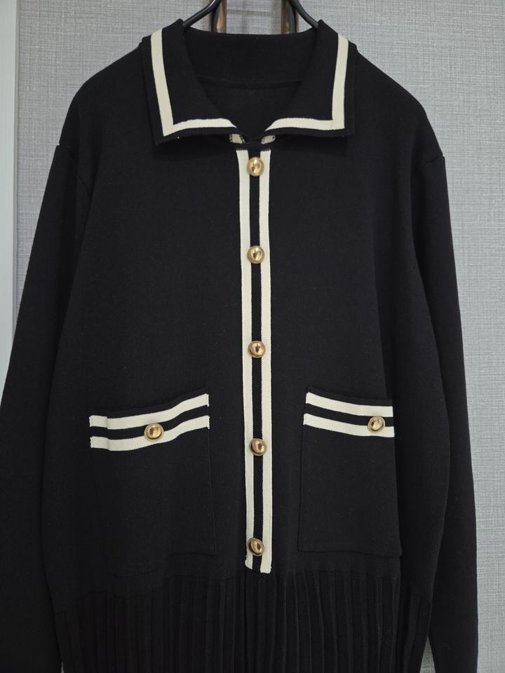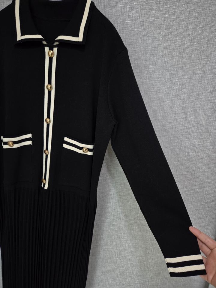 카라 니트 플리츠롱원피스