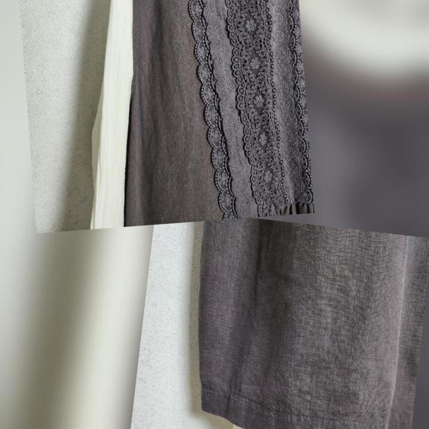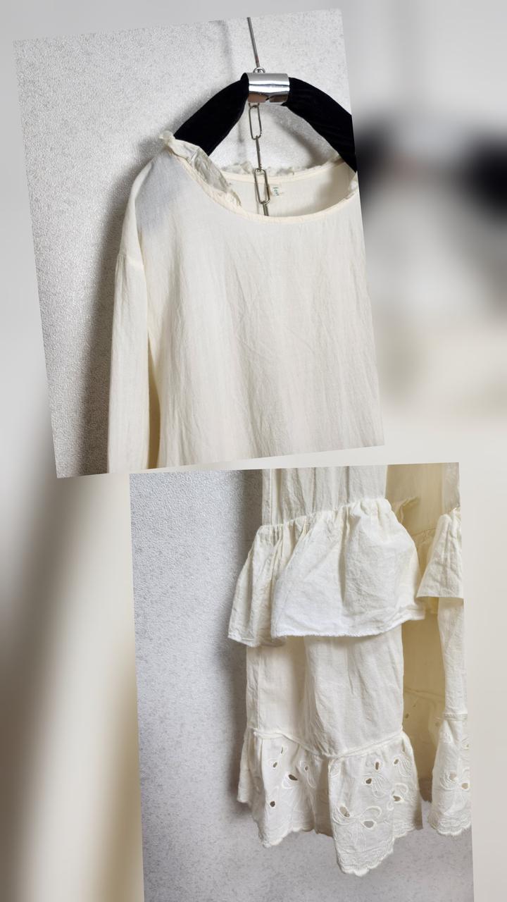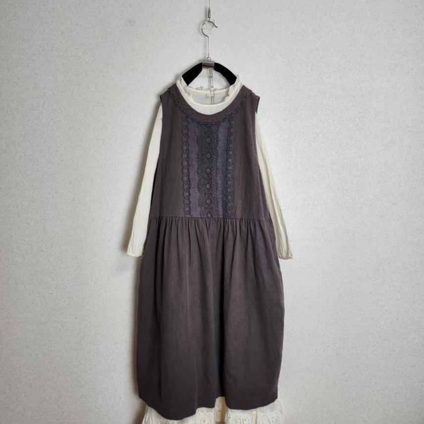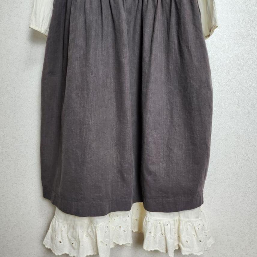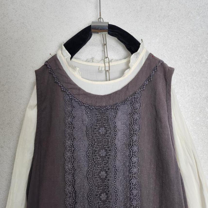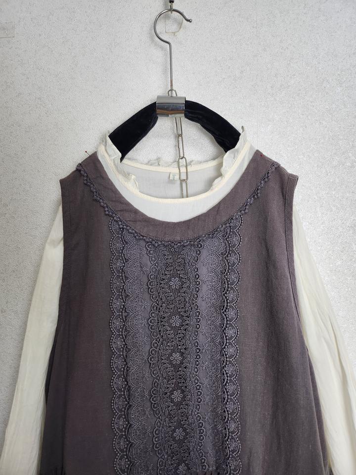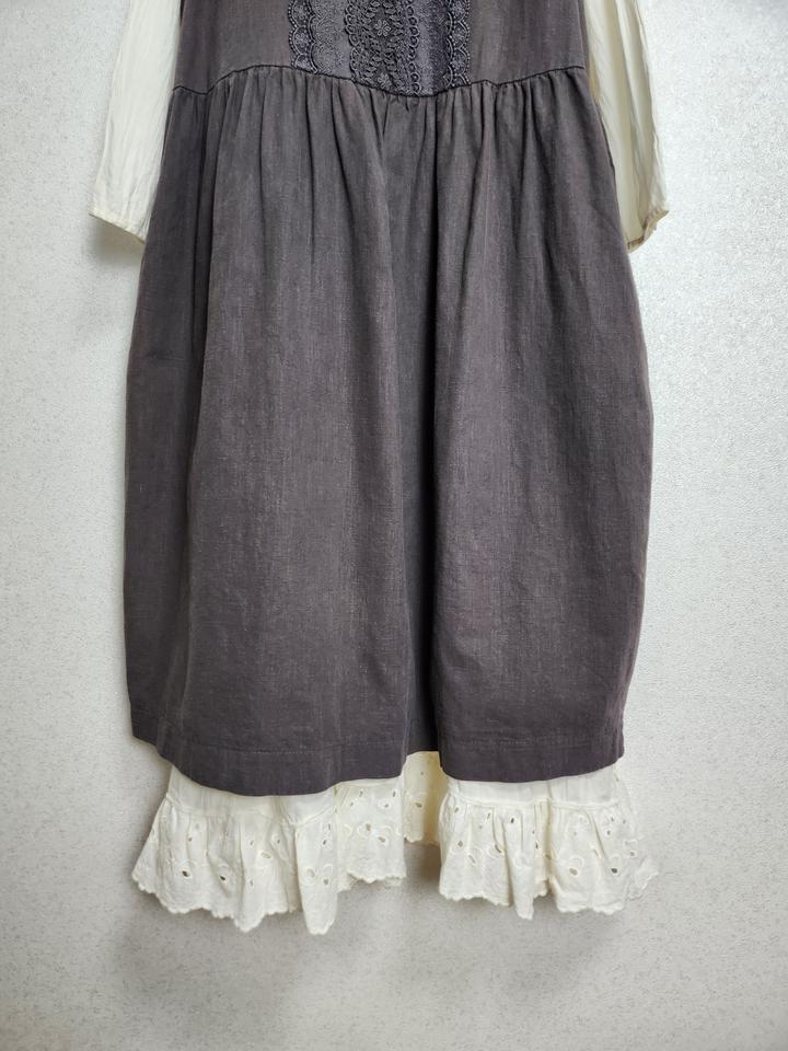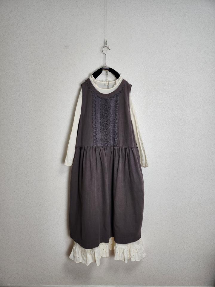 크로쉐배색 린넨100% 원피스&아일렛프릴 레이어드 원피스55 66