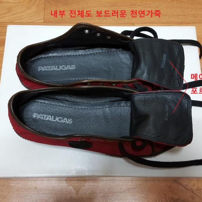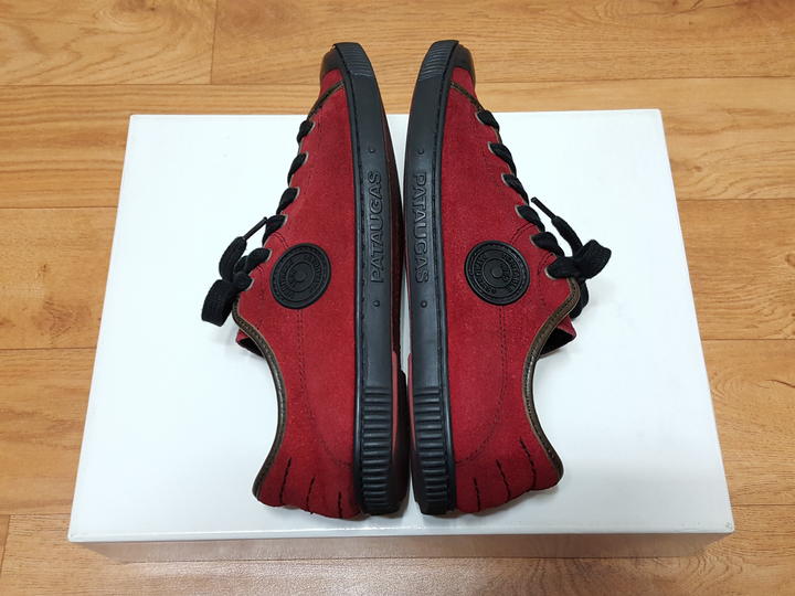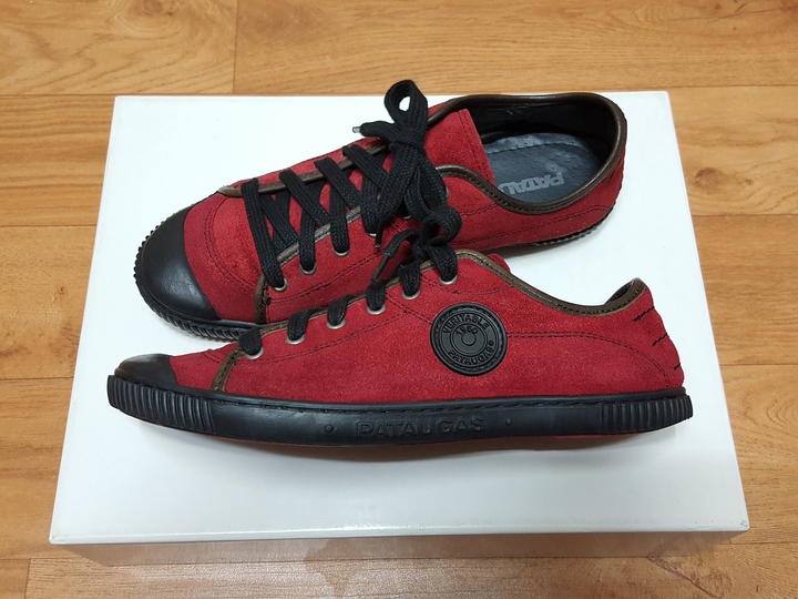 프랑스 프리미엄 스니커즈 브랜드로 유명한 파토갸스이며,, 롯데 본점에서 구입한 정품이에요.. 재료와 디자인은 모두 유럽에서 하고, 포르투갈 생산이에요..