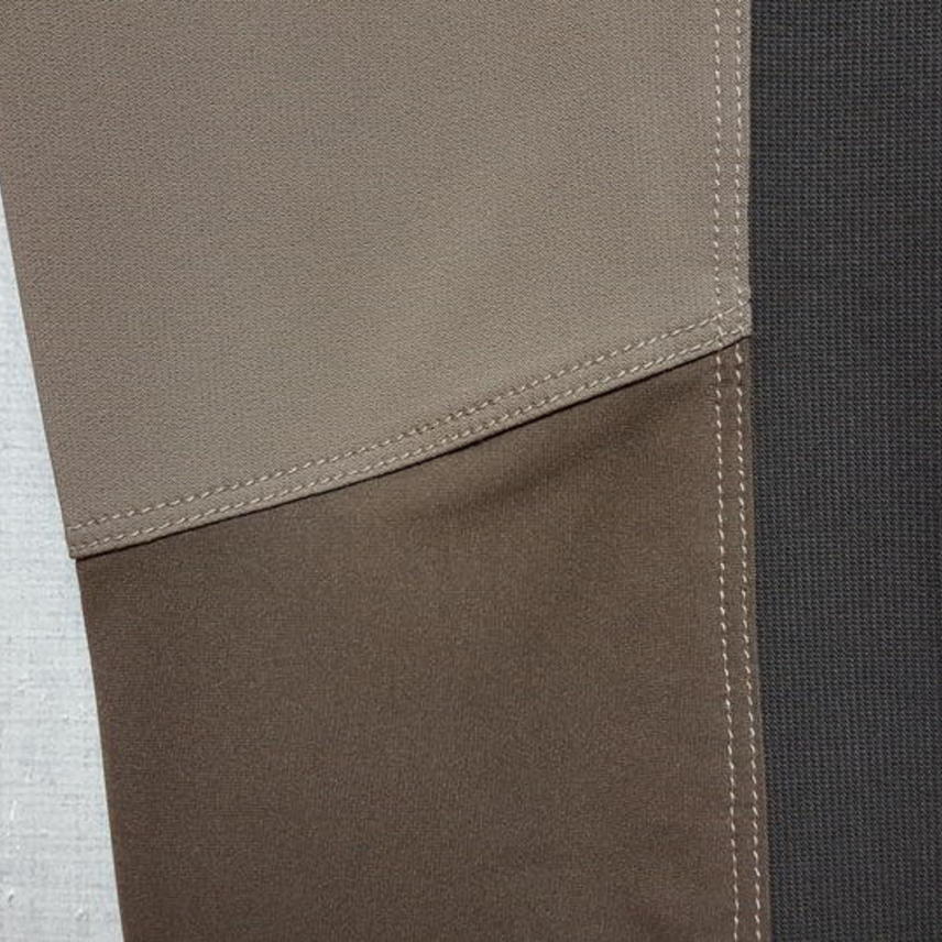 폴리에스터86+14%,, 기능성이며 신축성과 탄력성 아주 좋고요,, 연한 브라운에 진 브라운 콤비예요..
