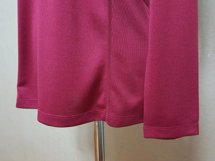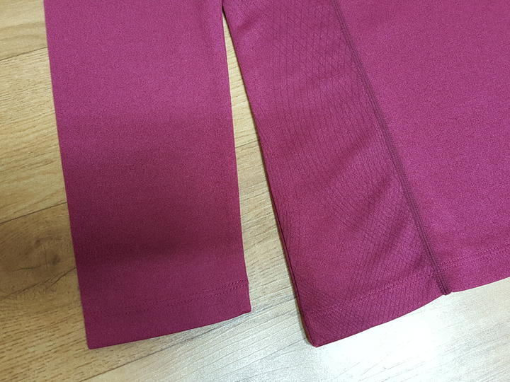 폴리에스터100%,, 기능성의 쿨한 소재이고요,, 신축성과 탄력성 좋으며 얇고 보들한 원단이예요.. 연한 버건디계열로 실사 색상 아주 예쁘고요,, 양옆구리부분은 은은한 패턴있어요..