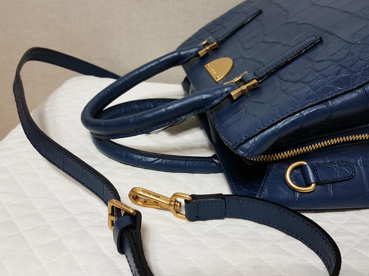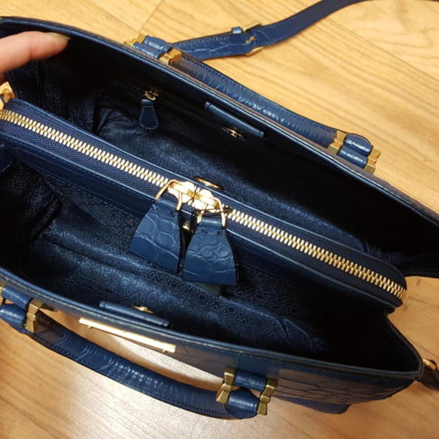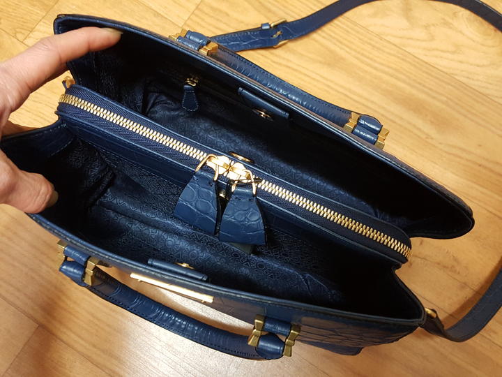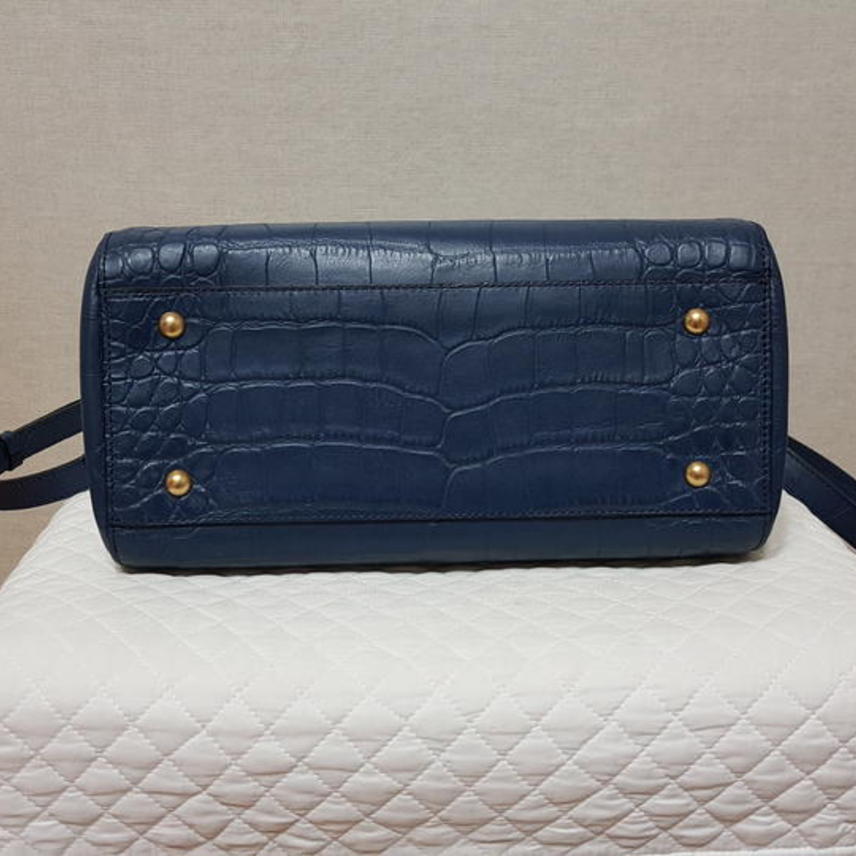 악어패턴있는 천연 소가죽이고요,, 도톰하고 탄탄한 가죽이며 진한 네이비계열인데 2차색이라 촌스럽지 않고 세련된 색상이예요..