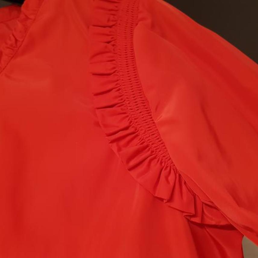 넥라인,어깨부분 주름과 러플디자인이 포인트예요