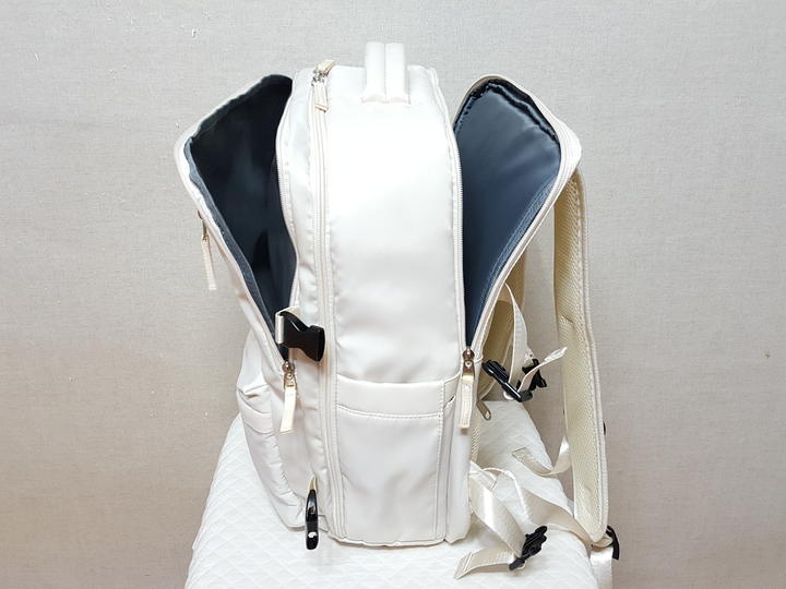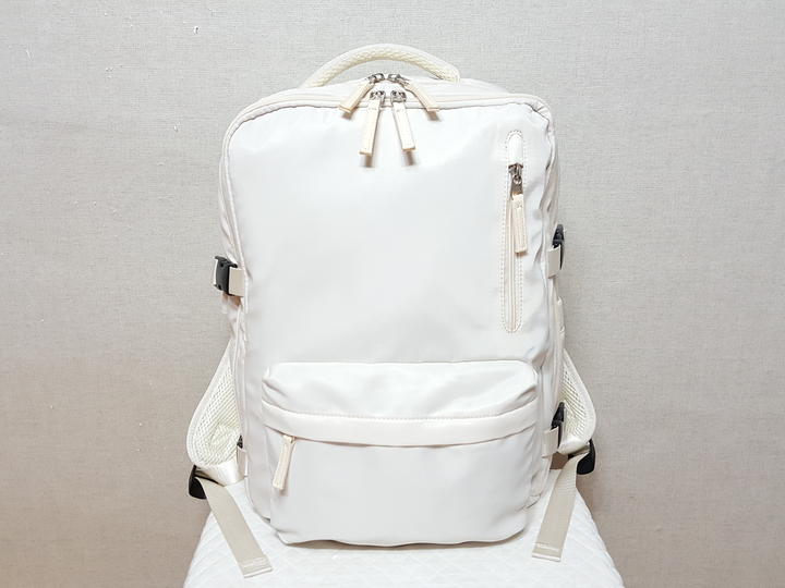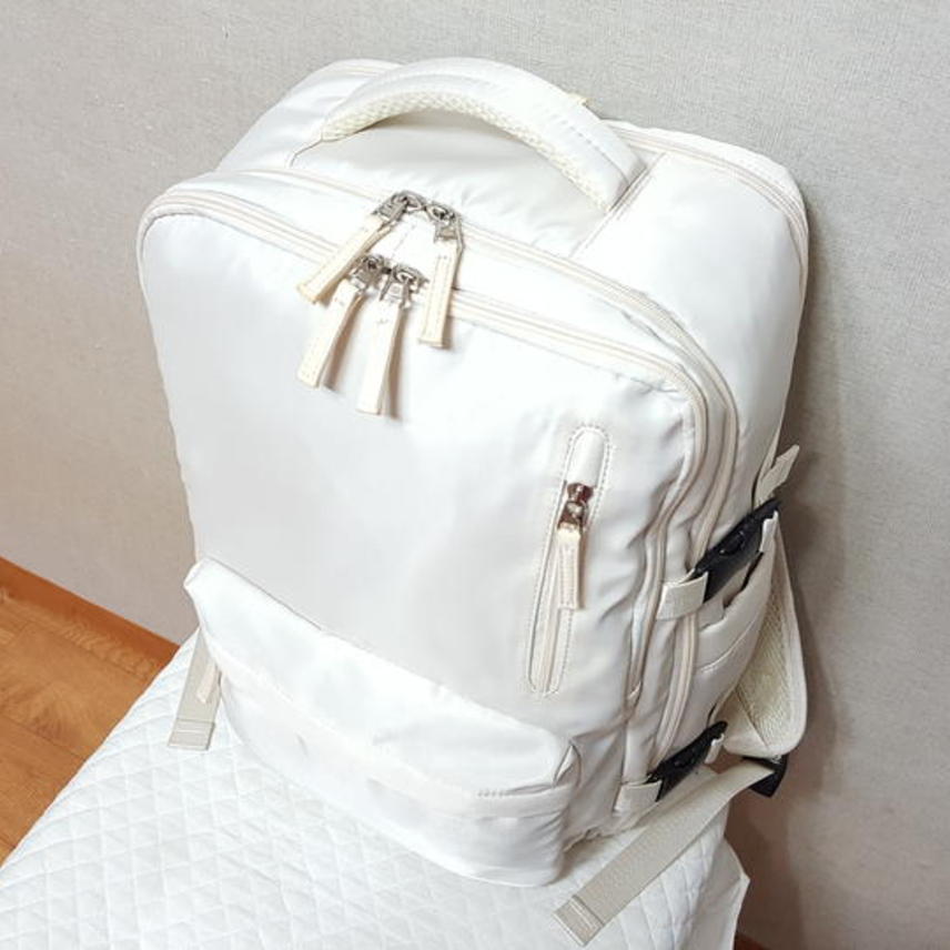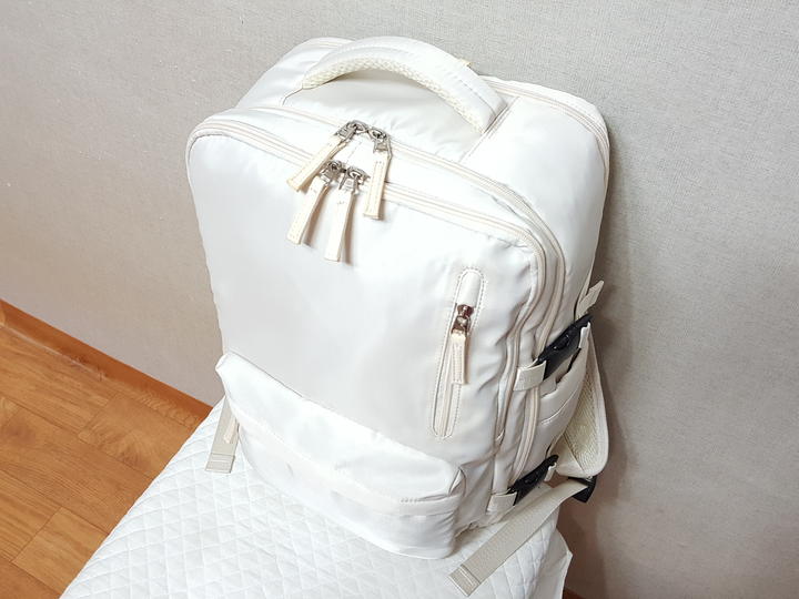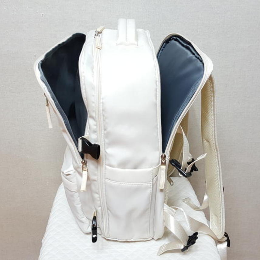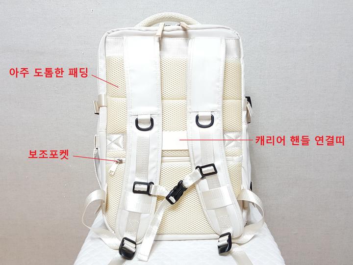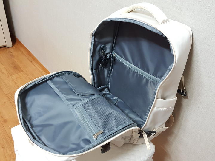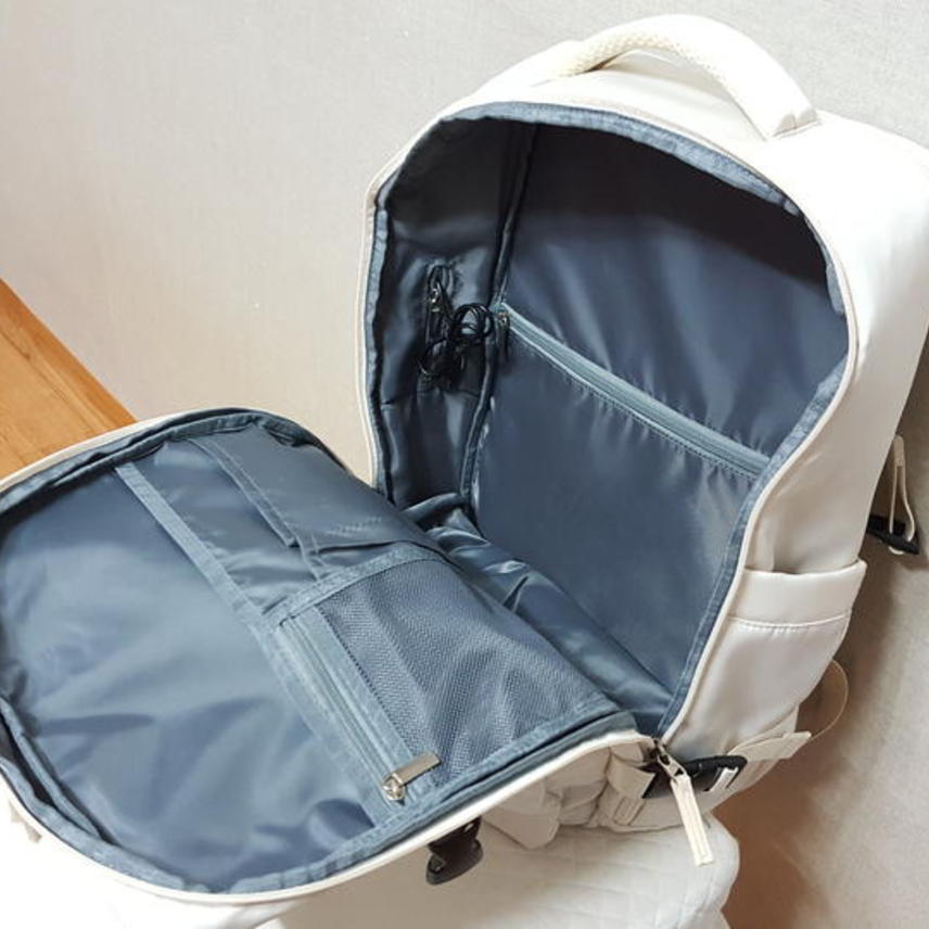USB연결포트와 노트북 수납포켓 별도로 크게 있으며,, 여행 캐리어 연결띠 있고 신발수납도 가능해서 여행용으로 사용할 수도 있어요.. 저도 여행용으로 필요해서 구입해 사용한 것이고요,, 신발수납은 하지 않았어요..