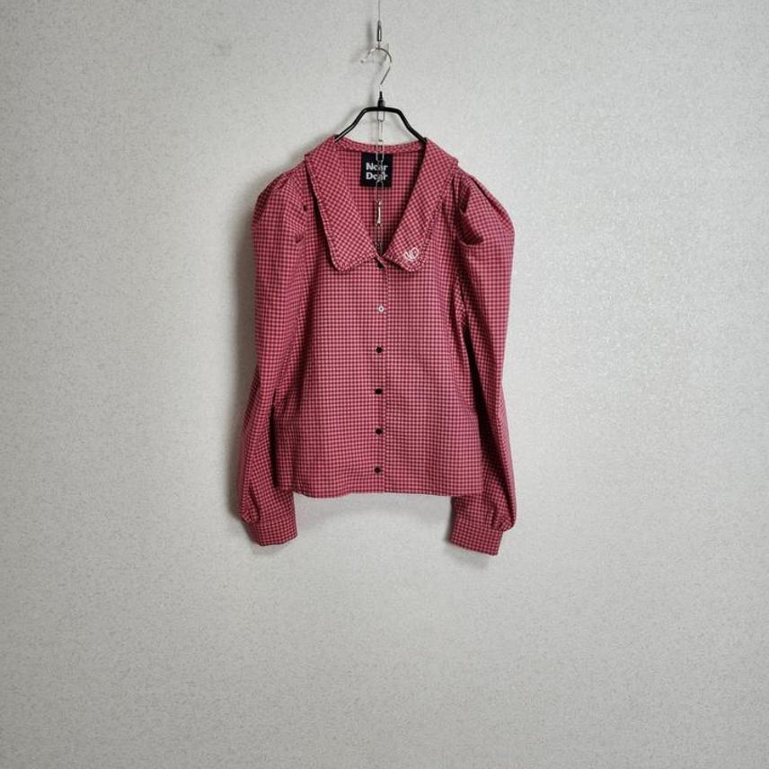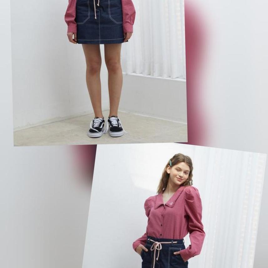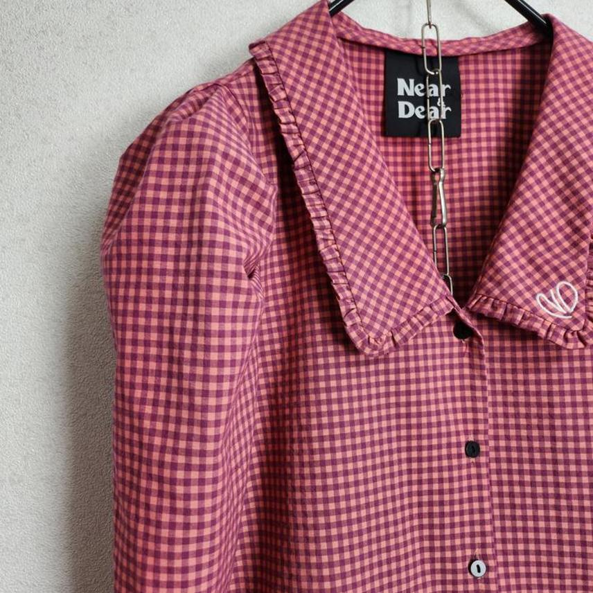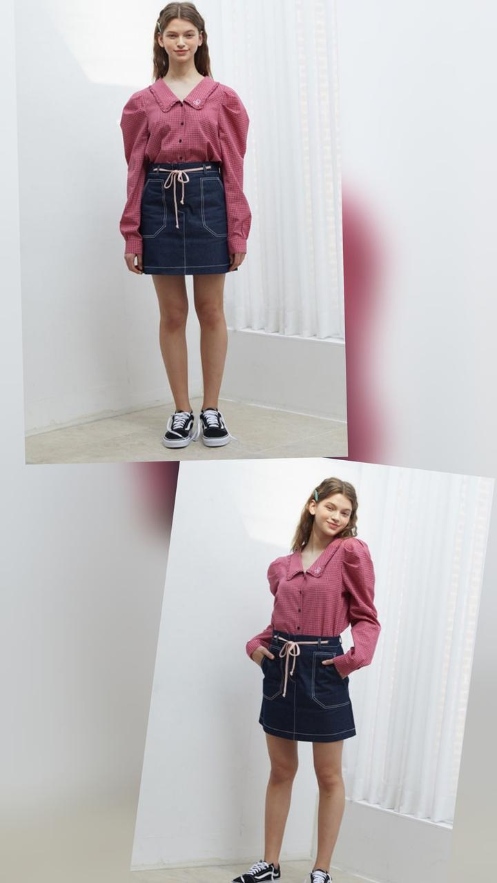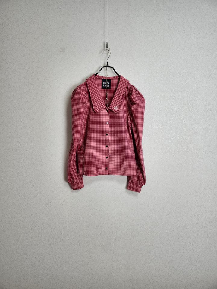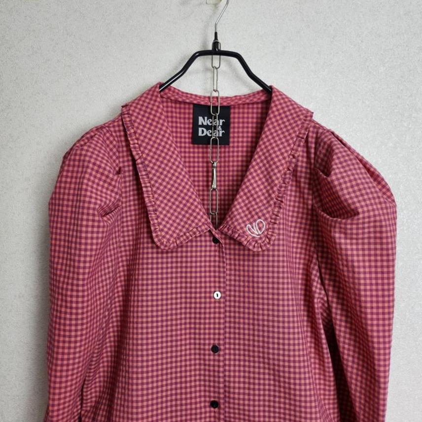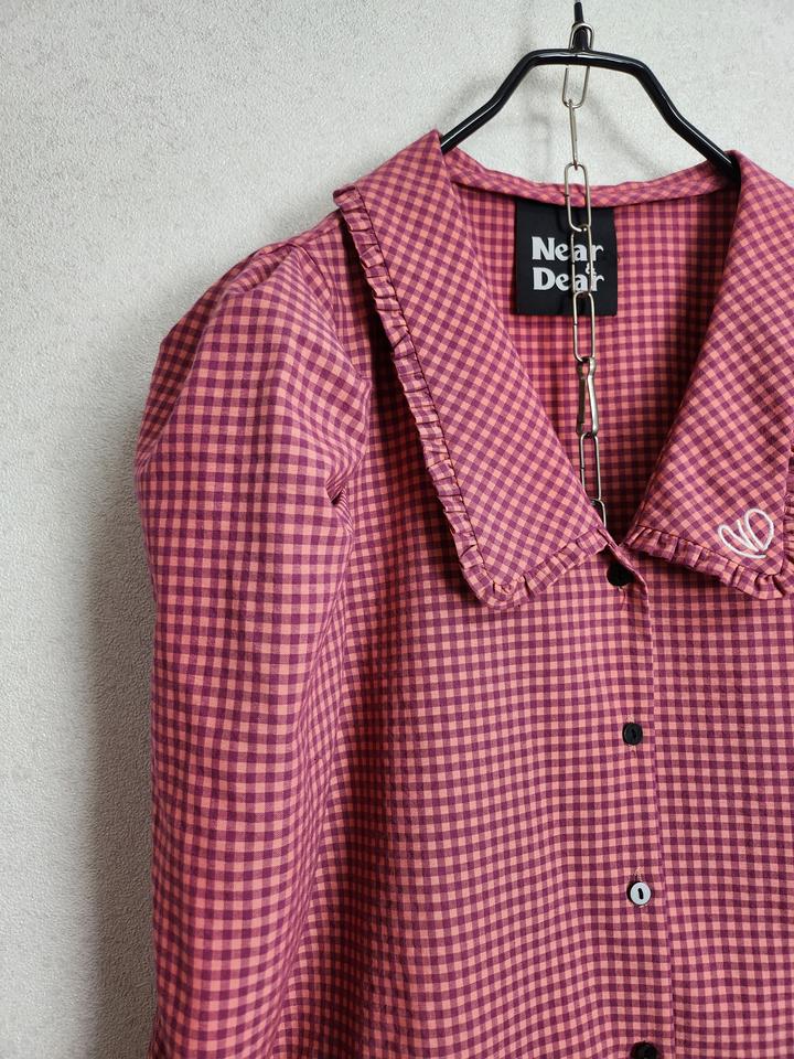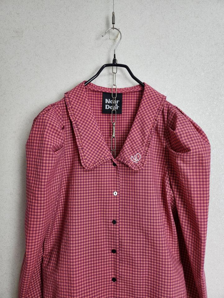 니어앤디어 퍼프소매 체크 블라우스55 66