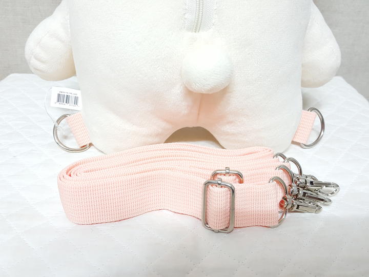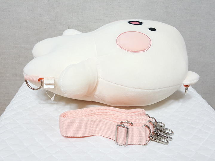32cm,, 아주 보드러운 극세사이며 미색이고요,, 어깨끈 탈착가능해서 비치용이나 완구로 사용하셔도 되세요.. 가볍고 폭신폭신해요..